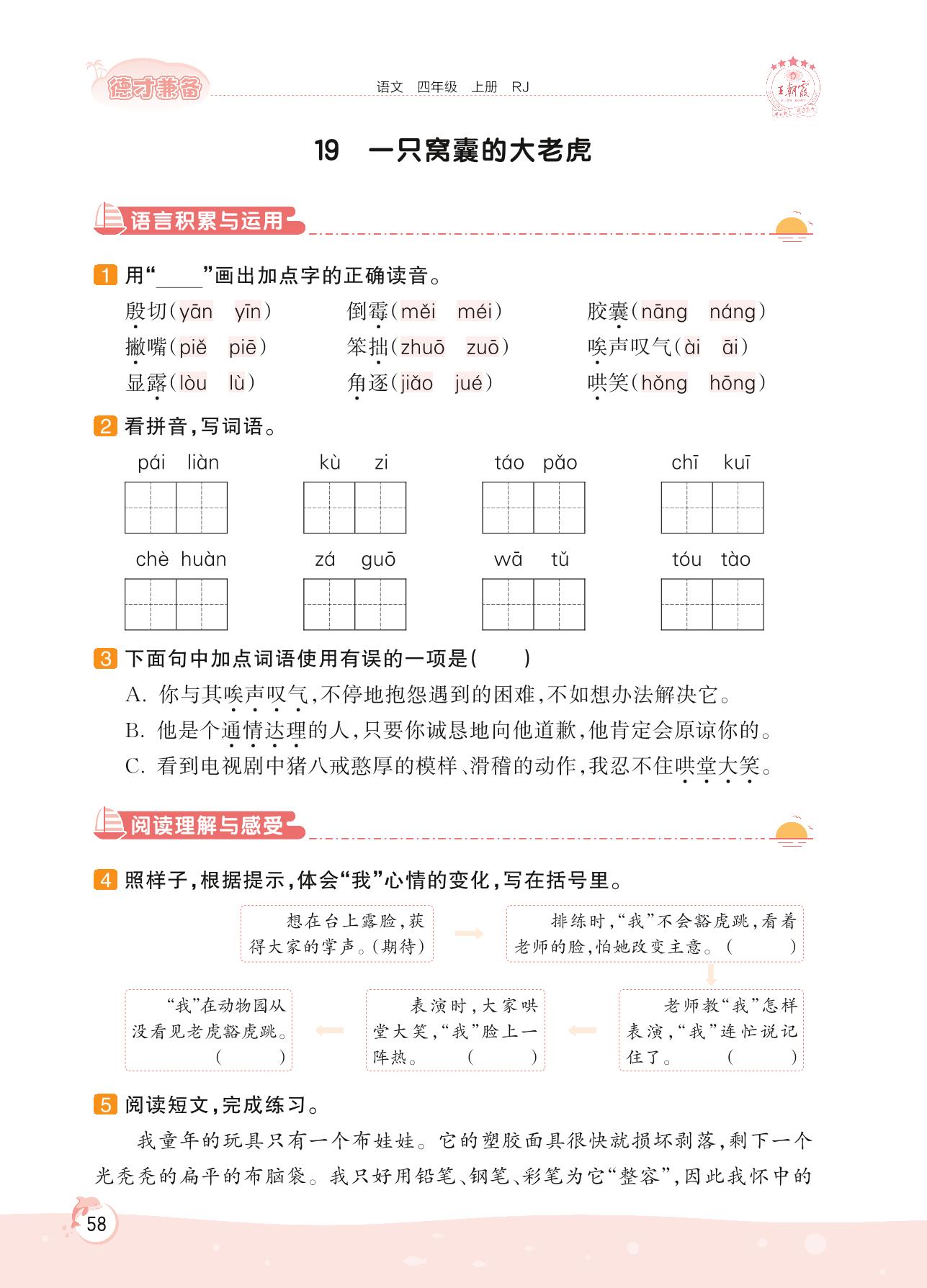 2022上册四年级语文人教版 第六单元 成长故事——19 一只窝囊的大老虎