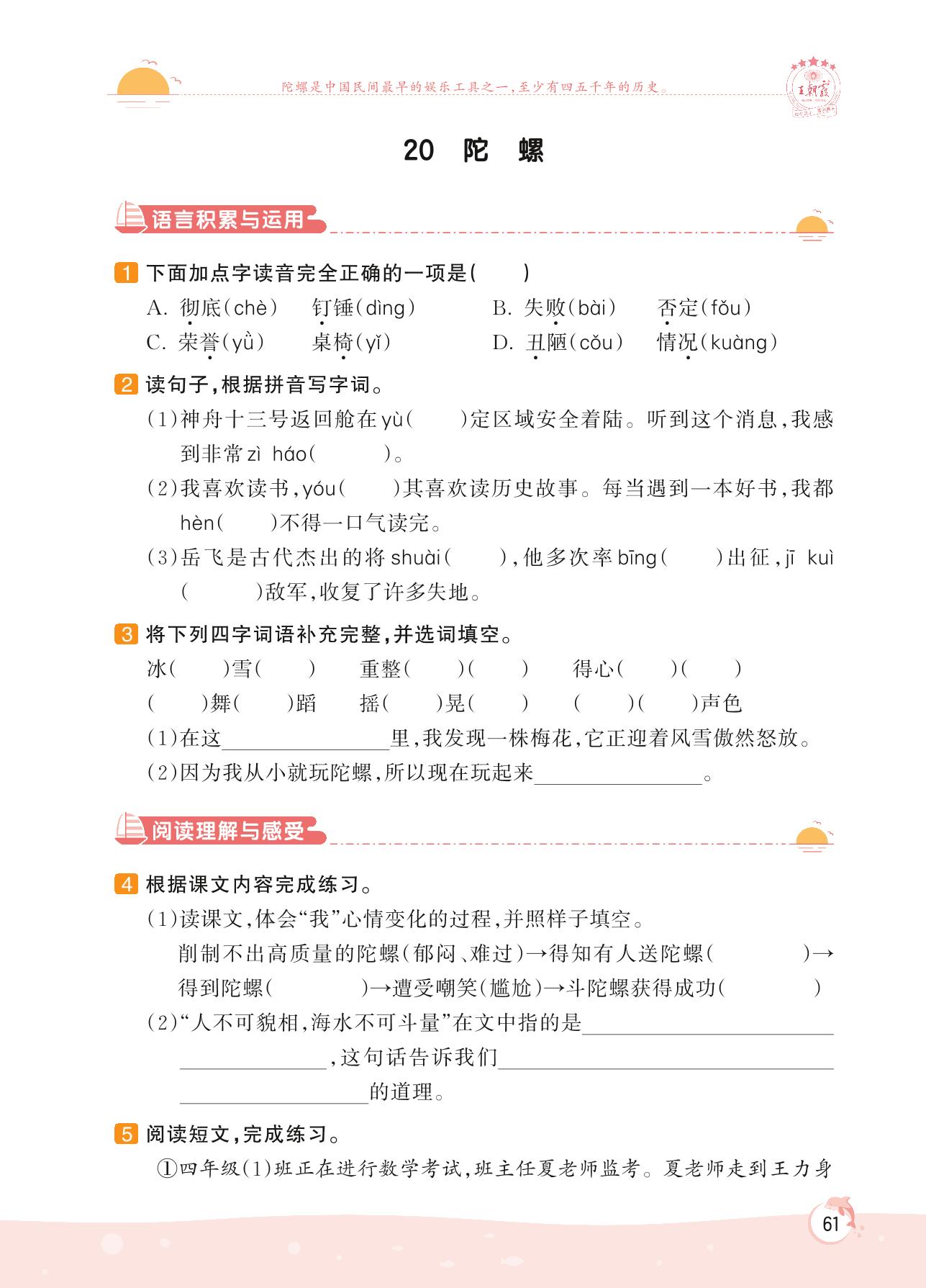 2022上册四年级语文人教版 第六单元 成长故事——20 陀螺