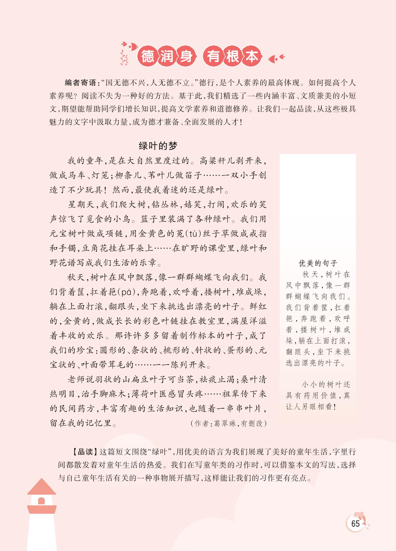 2022上册四年级语文人教版 第六单元 成长故事——德润身 有根本(素养提升)