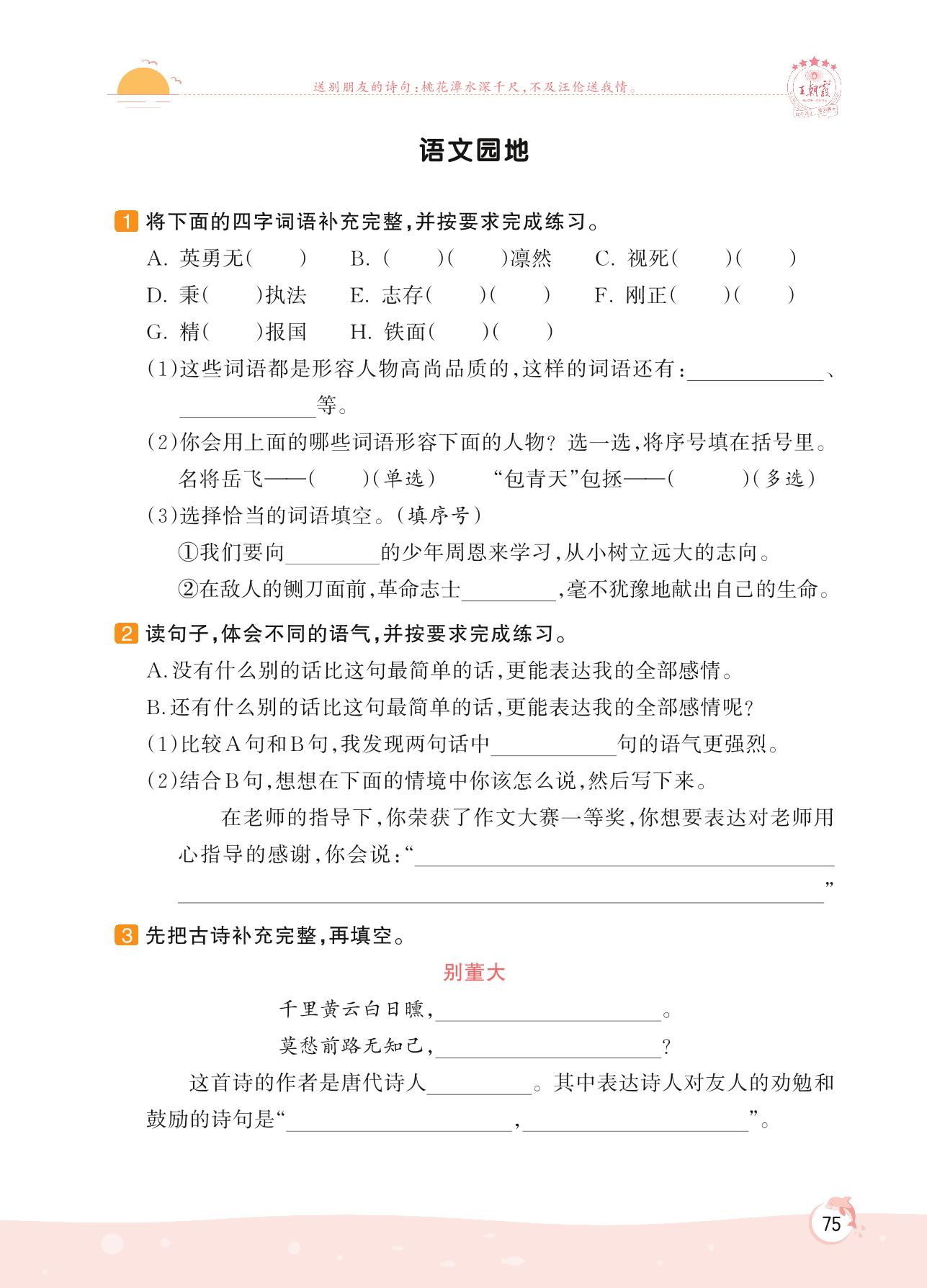 2022上册四年级语文人教版 第七单元 家国情怀——语文园地