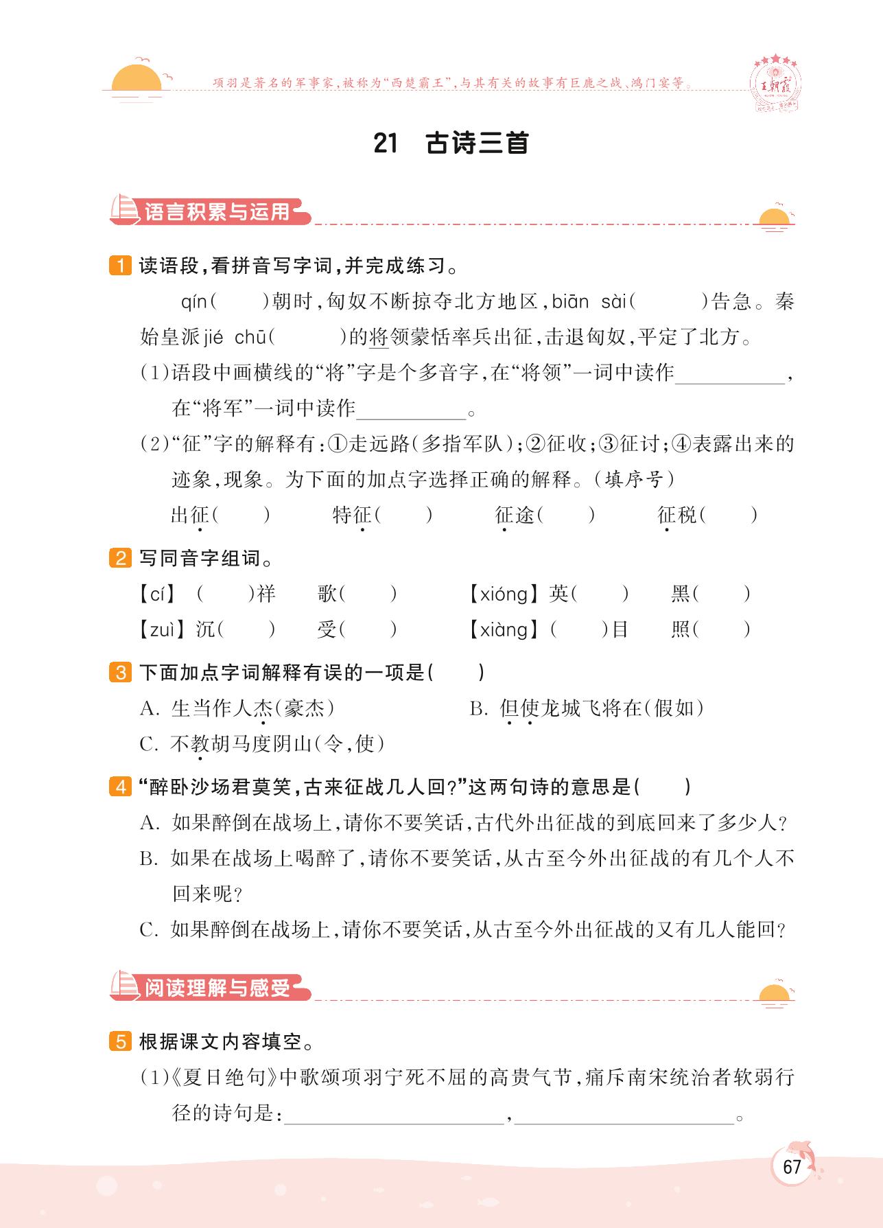 2022上册四年级语文人教版 第七单元 家国情怀——21 古诗三首