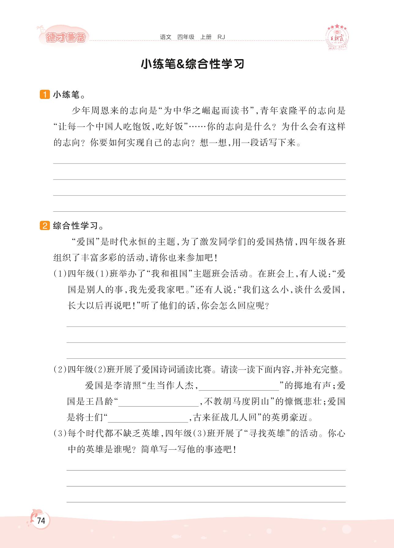 2022上册四年级语文人教版 第七单元 家国情怀——小练笔&综合性学习(语用提升)