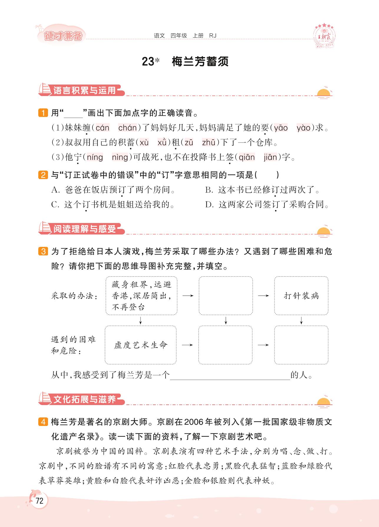 2022上册四年级语文人教版 第七单元 家国情怀——23 梅兰芳蓄须