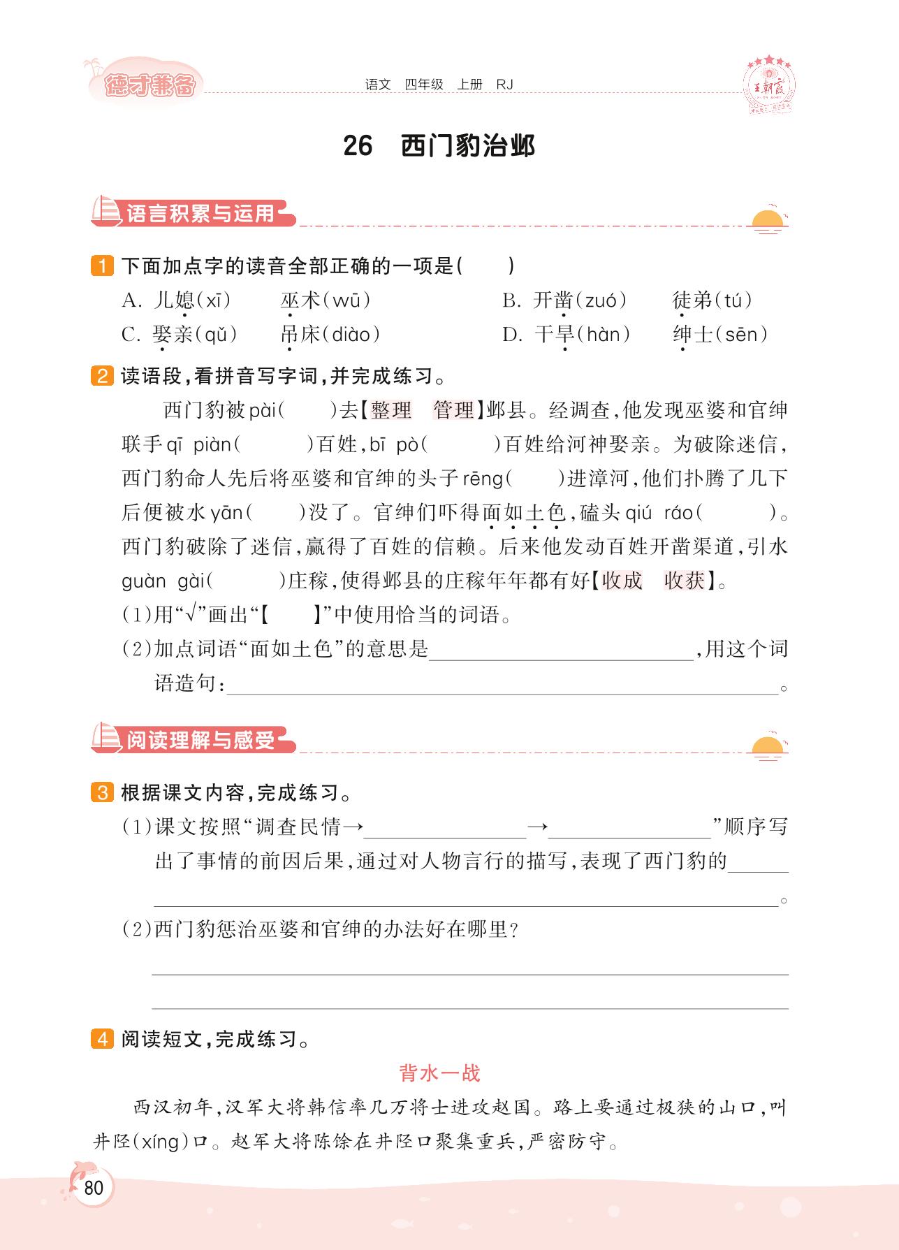 2022上册四年级语文人教版 第八单元 历史传说故事——26 西门豹治邺