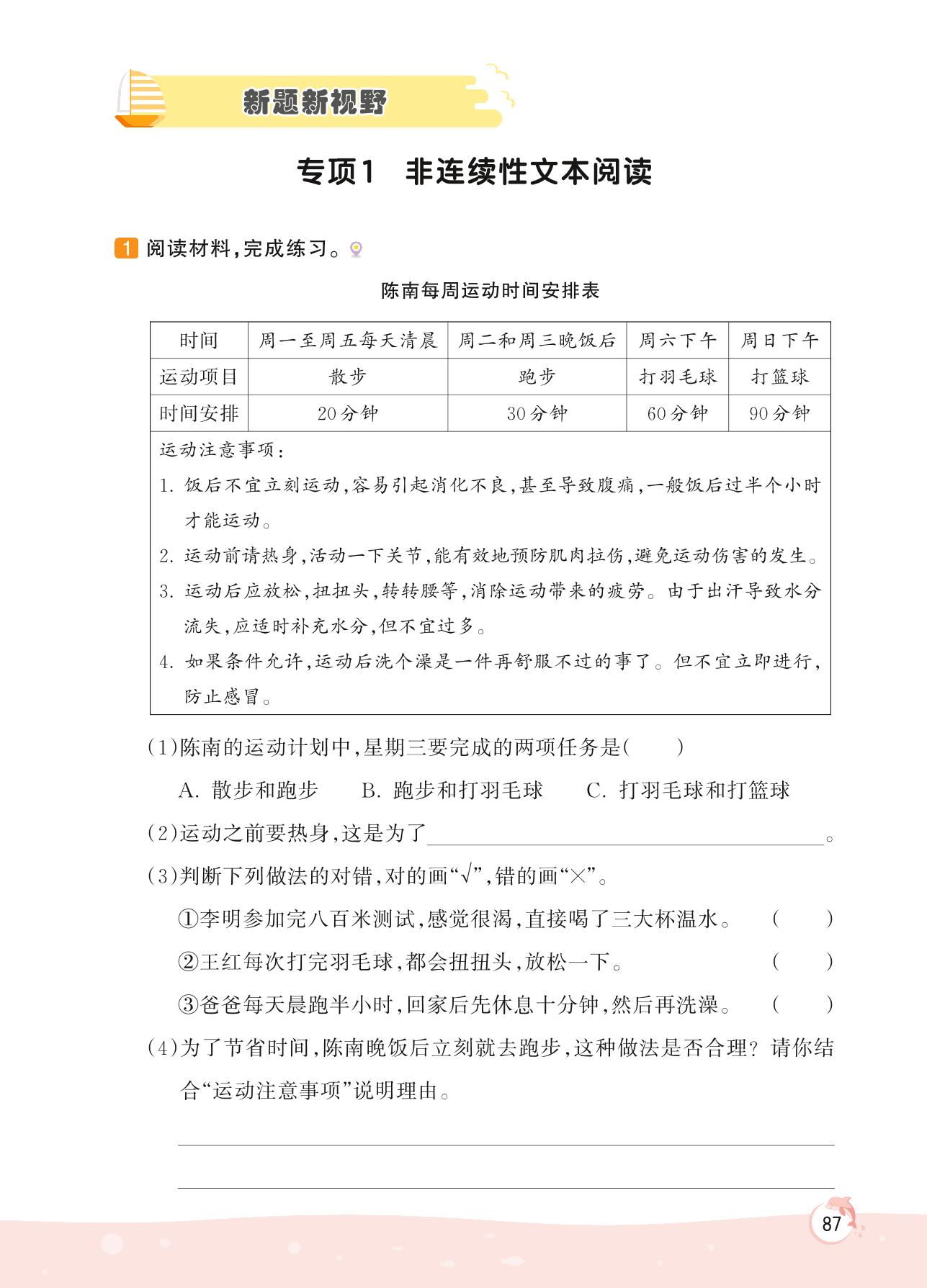 2022上册四年级语文人教版 新题新视野 专项训练——专项1 非连续性文本阅读