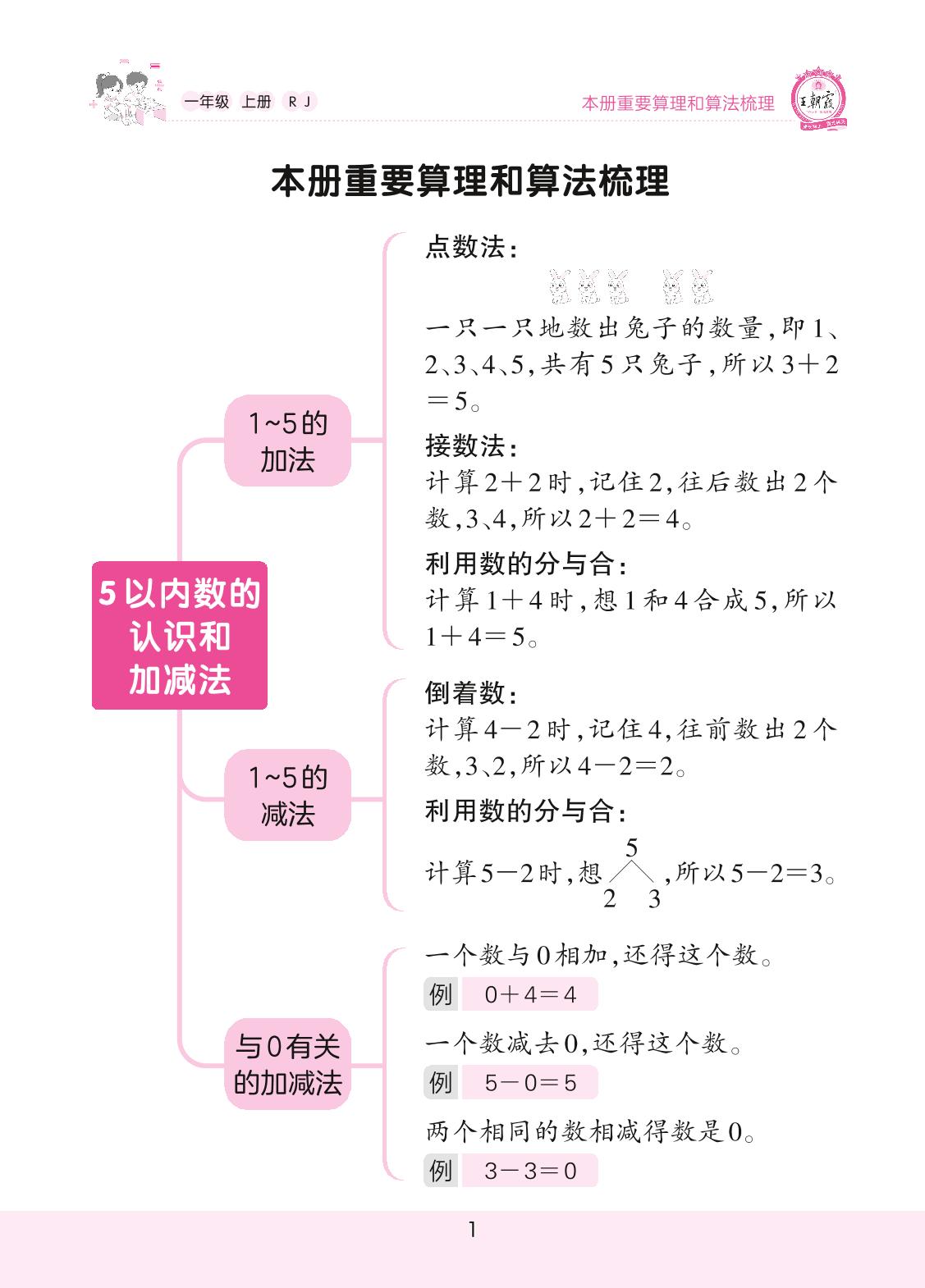 2022上册一年级数学人教版 本册重要算理和算法梳理