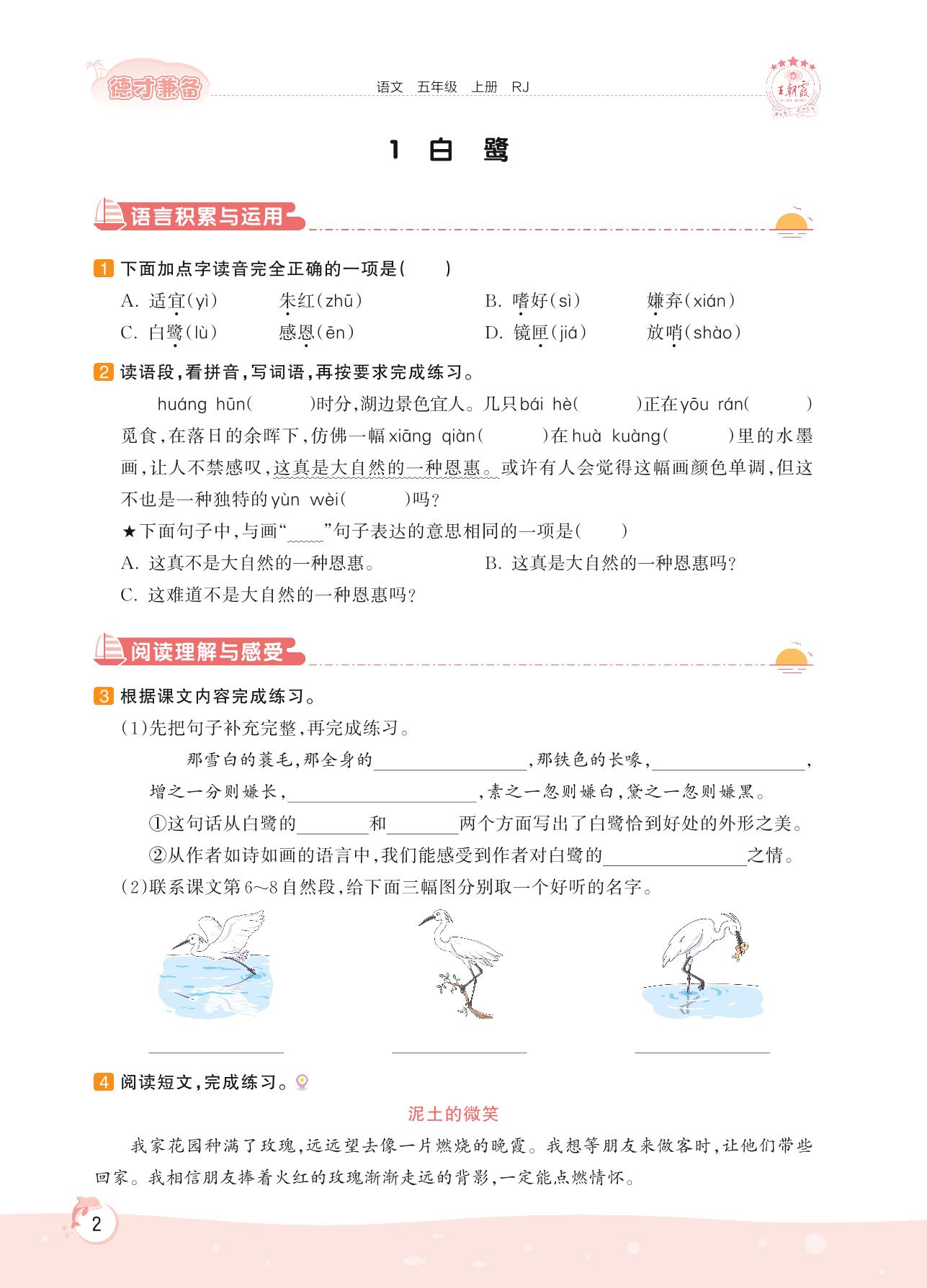 2022上册五年级语文人教版 第一单元 万物有灵——1 白鹭