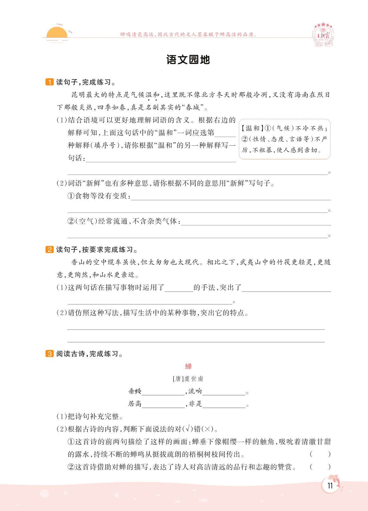 2022上册五年级语文人教版 第一单元 万物有灵——语文园地