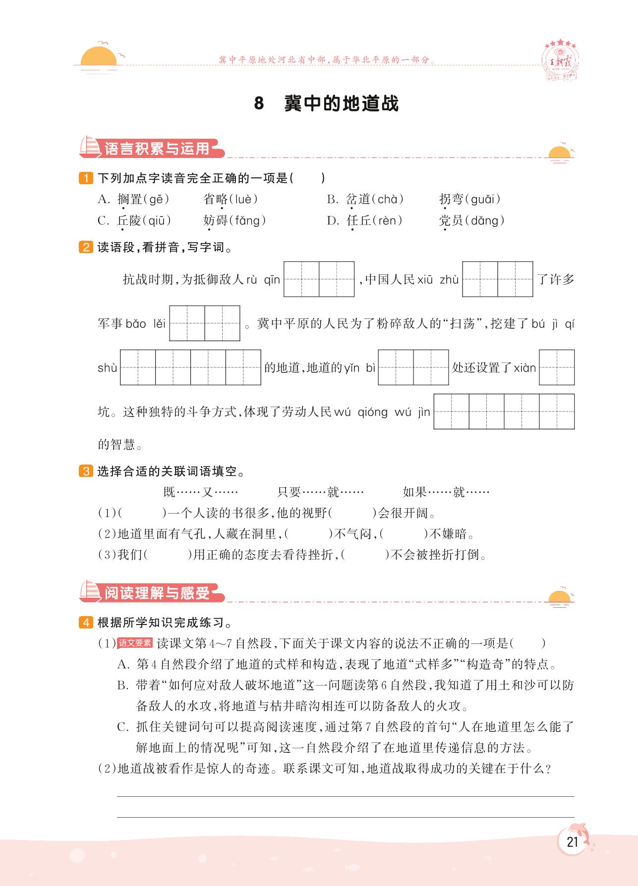 2022上册五年级语文人教版 第二单元 阅读策略 提高阅读速度——8 冀中的地道战