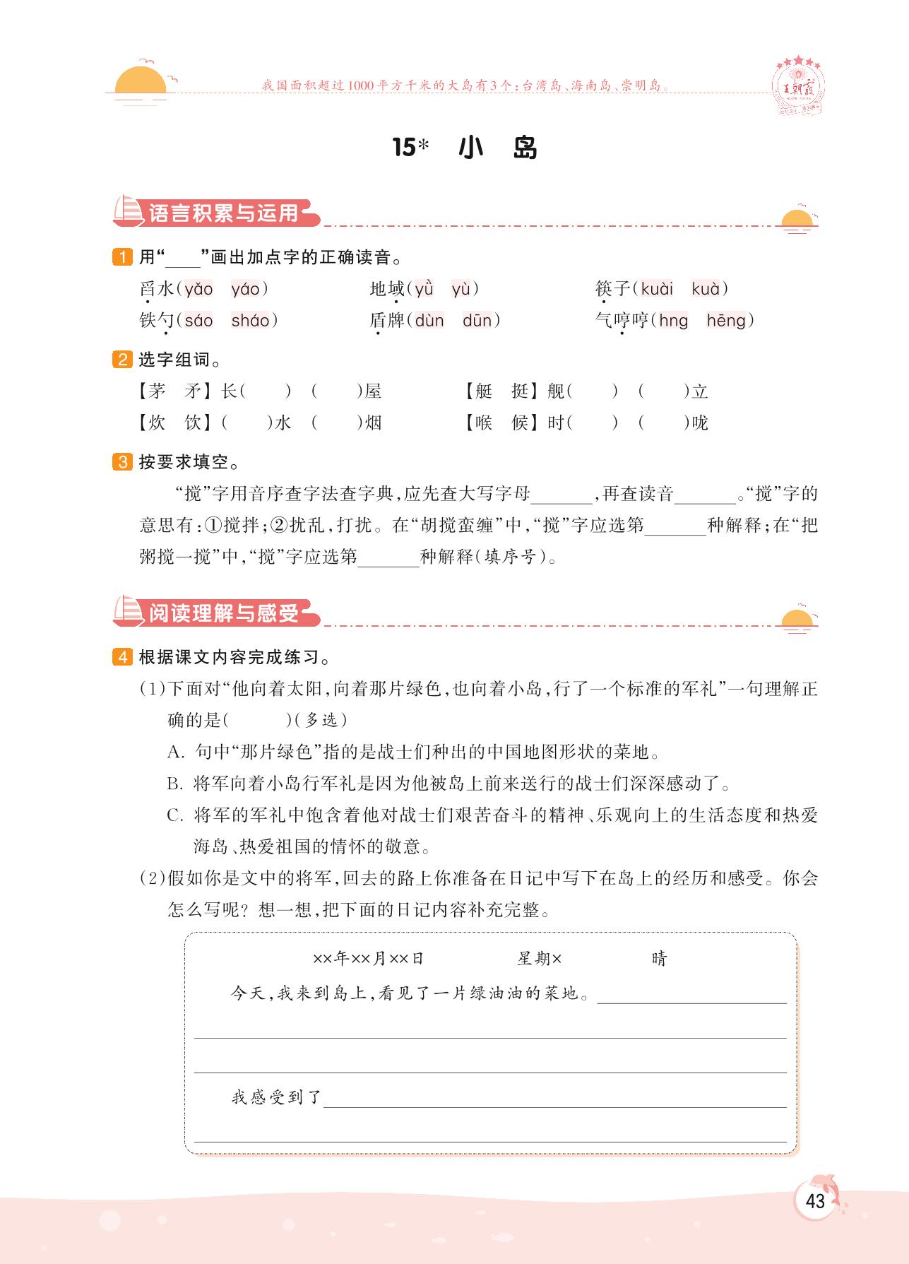 2022上册五年级语文人教版 第四单元 爱国情怀——15 小岛