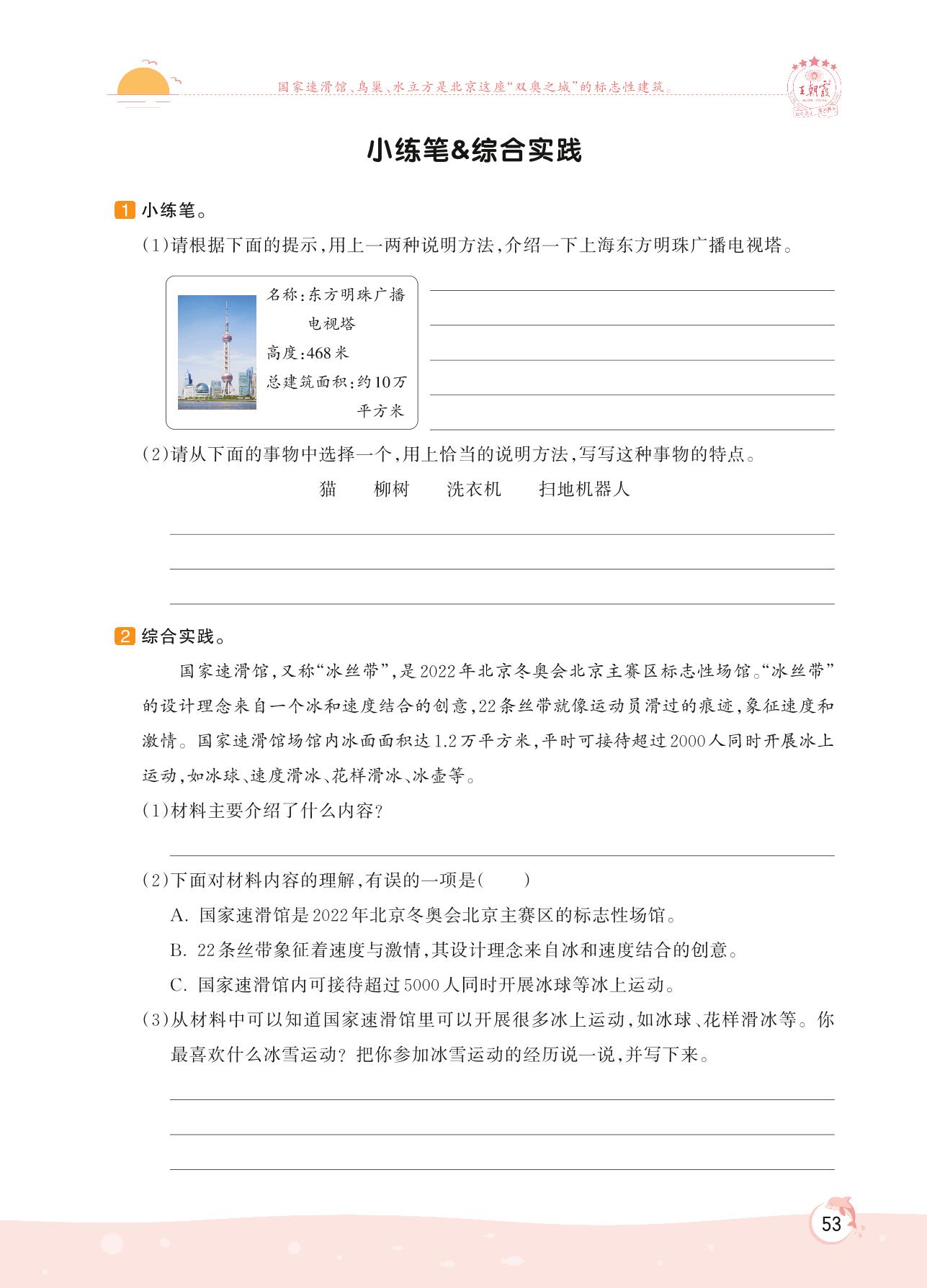 2022上册五年级语文人教版 第五单元 习作——小练笔&综合实践(语用提升)