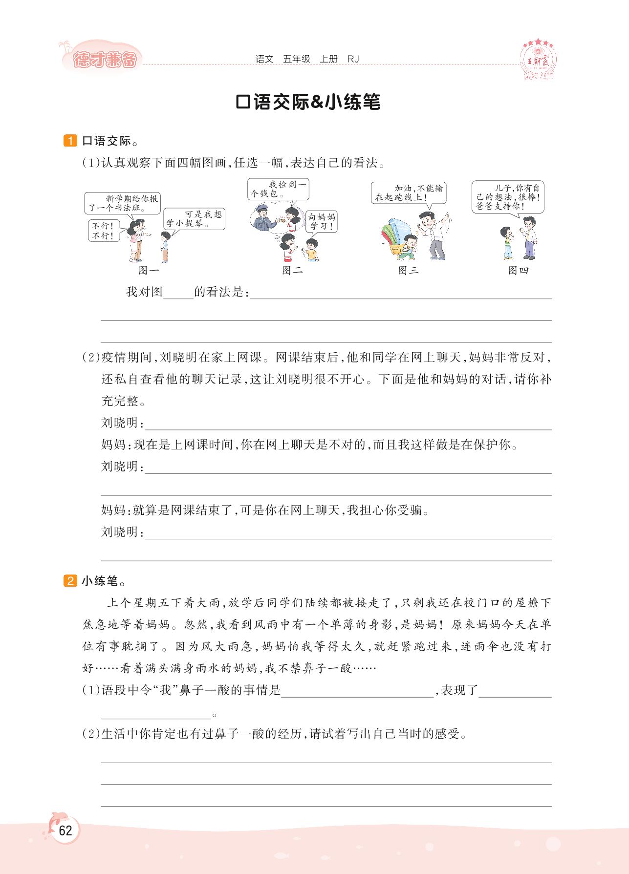 2022上册五年级语文人教版 第六单元 舐犊情深——口语交际&小练笔(语用提升)