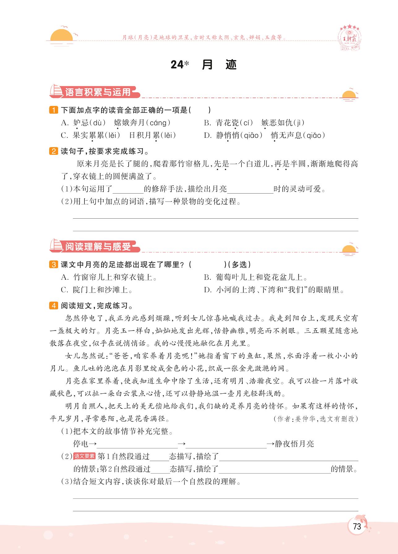 2022上册五年级语文人教版 第七单元 自然之趣——24 月迹