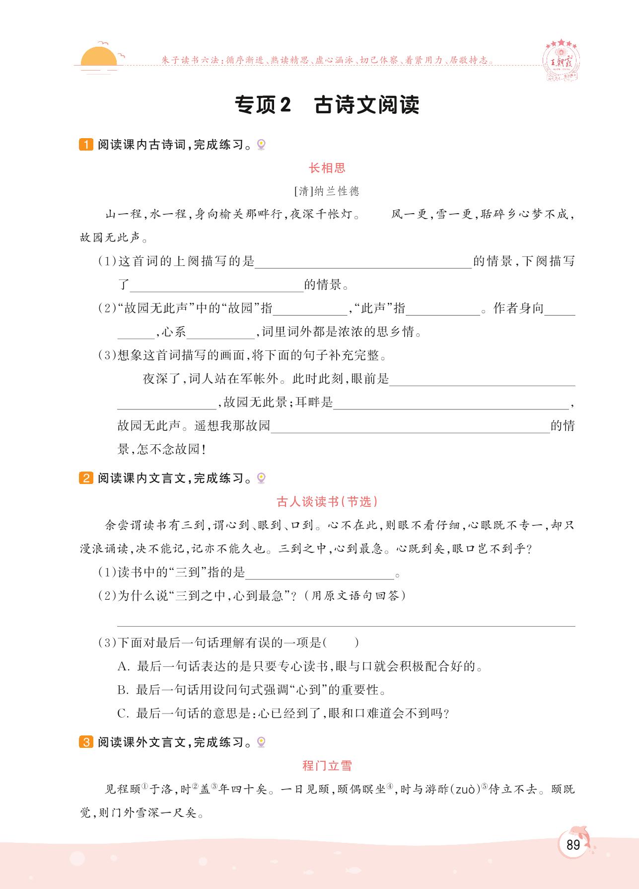 2022上册五年级语文人教版 新题新视野 专项训练——专项2 古诗文阅读