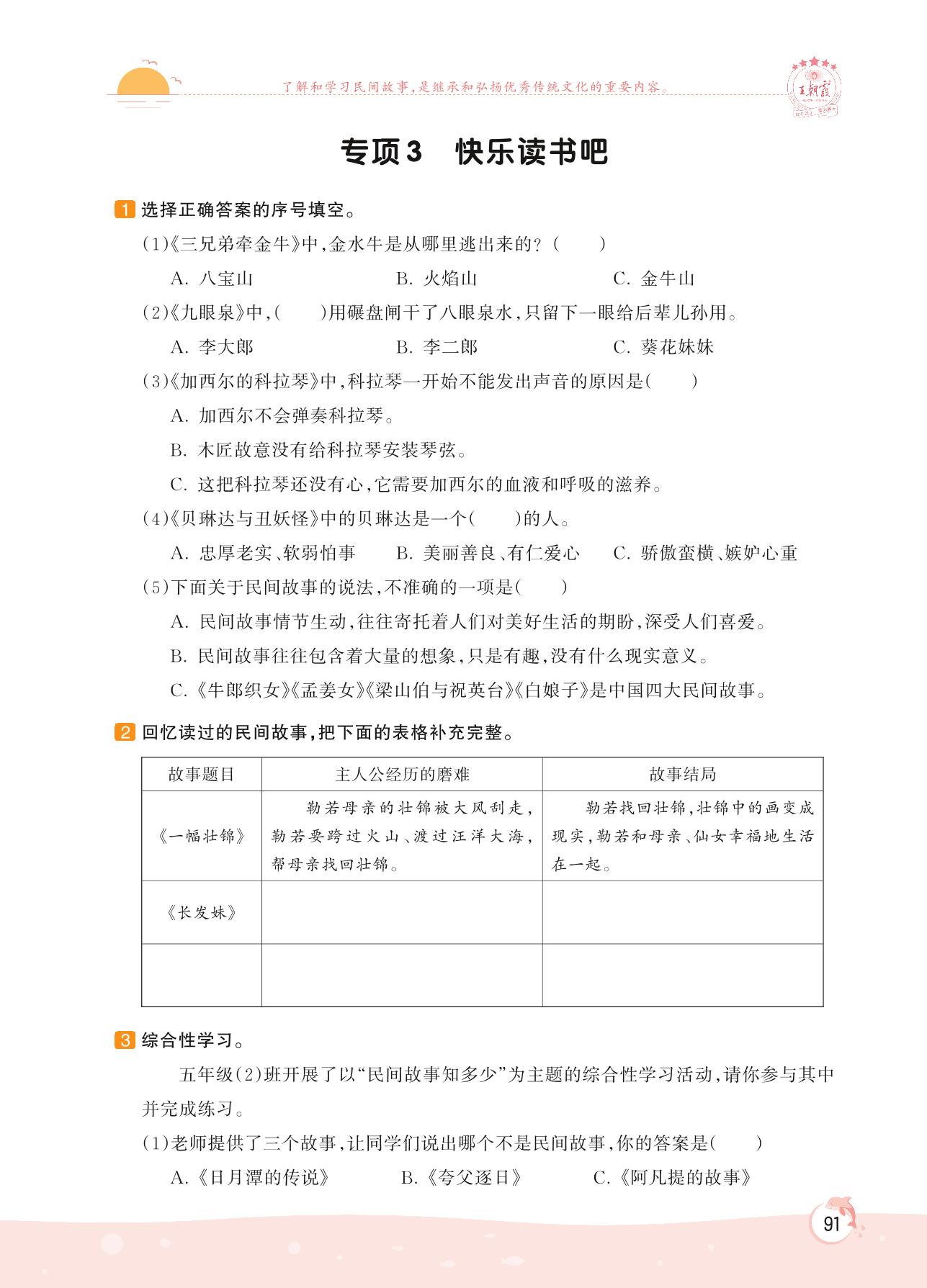 2022上册五年级语文人教版 新题新视野 专项训练——专项3 快乐读书吧