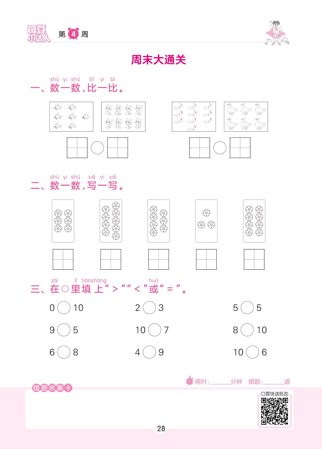 2022上册一年级数学苏教版 第4周 周末大通关