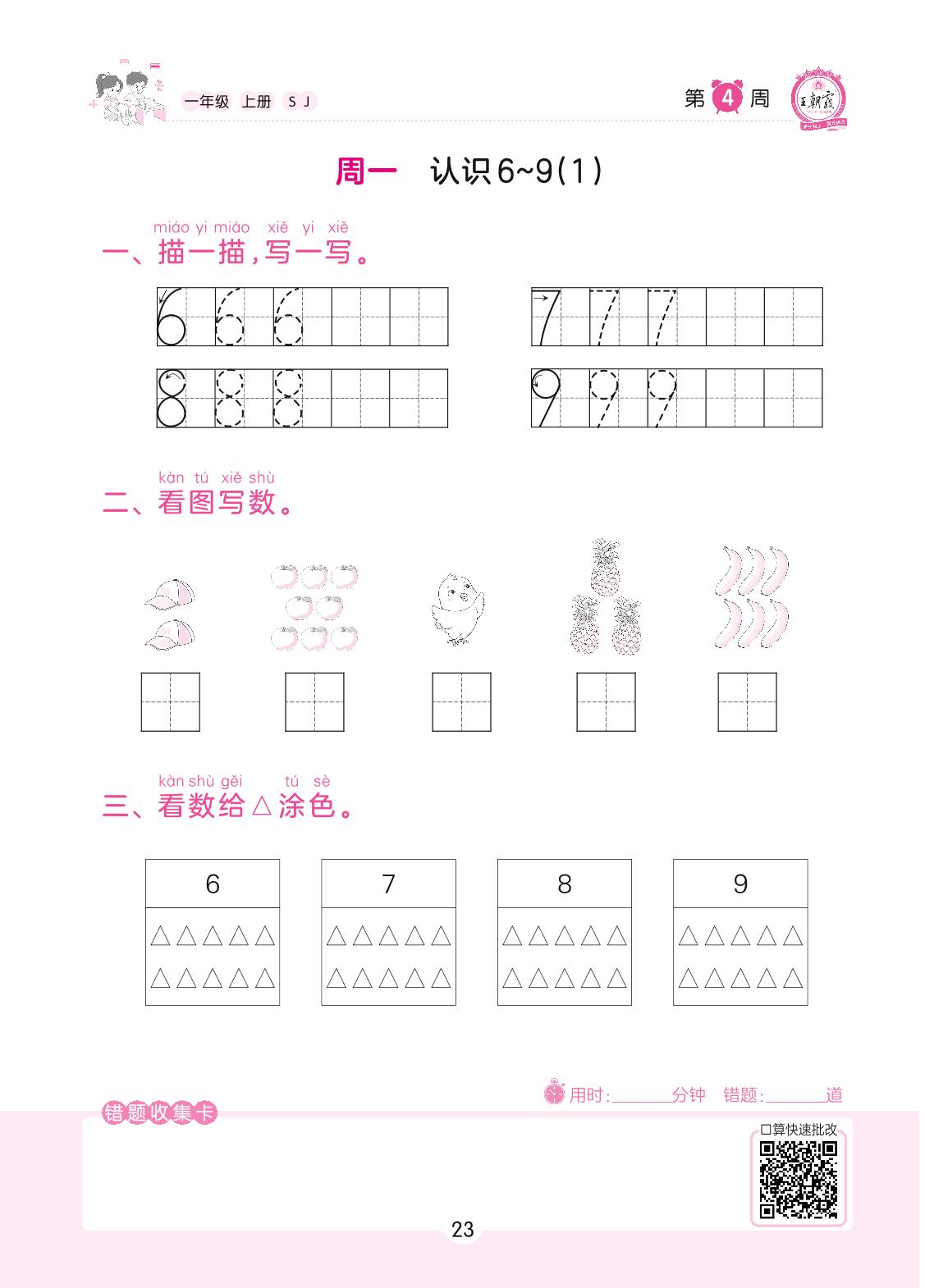 2022上册一年级数学苏教版 第4周 周一