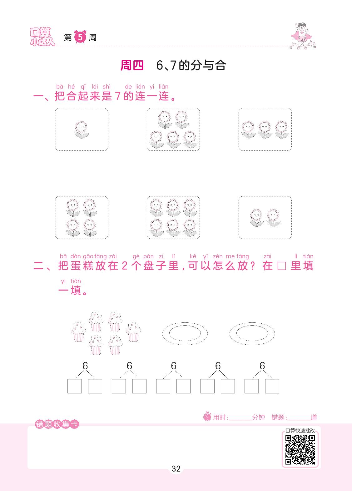 2022上册一年级数学苏教版 第5周 周四