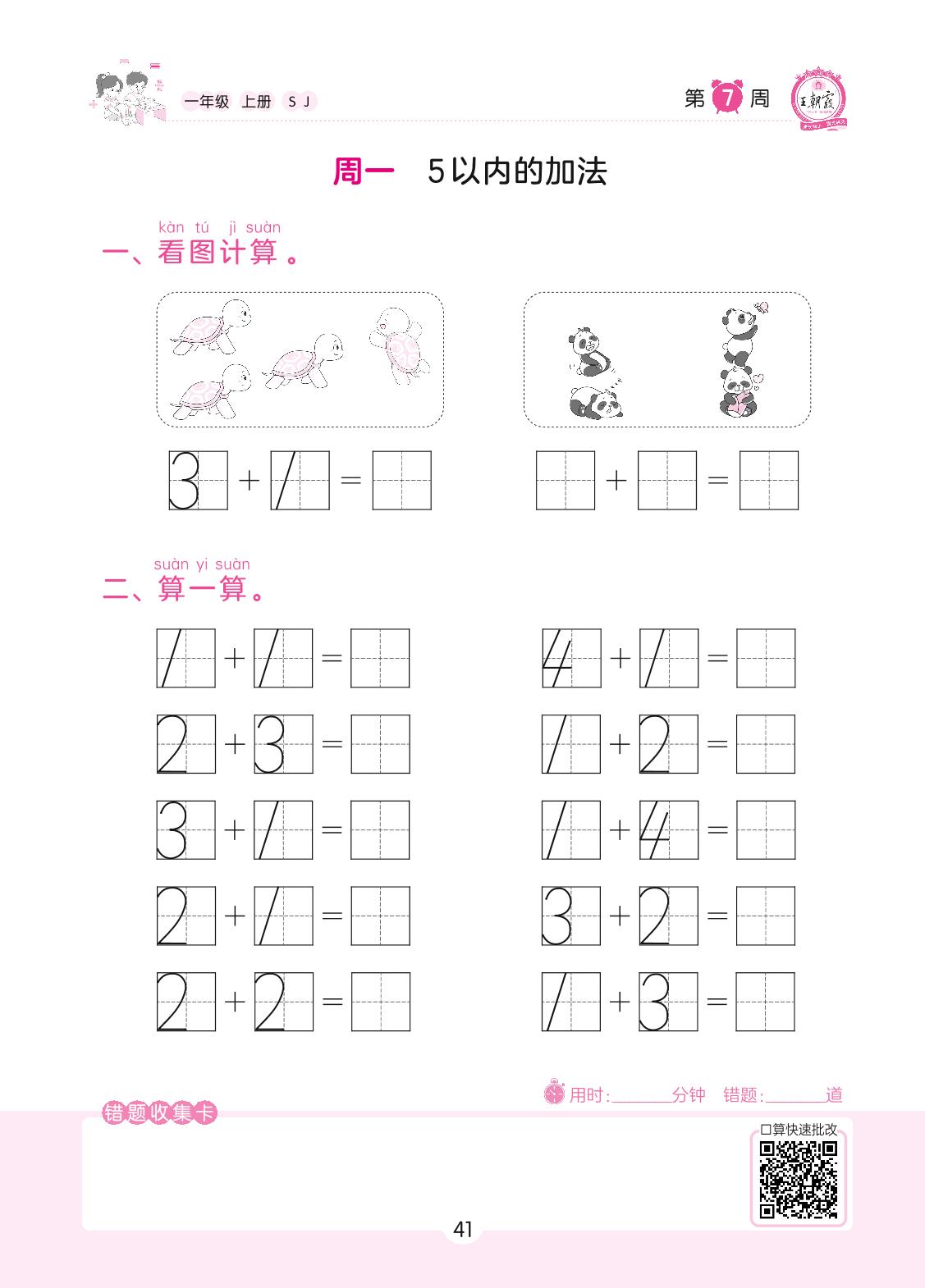 2022上册一年级数学苏教版 第7周 周一
