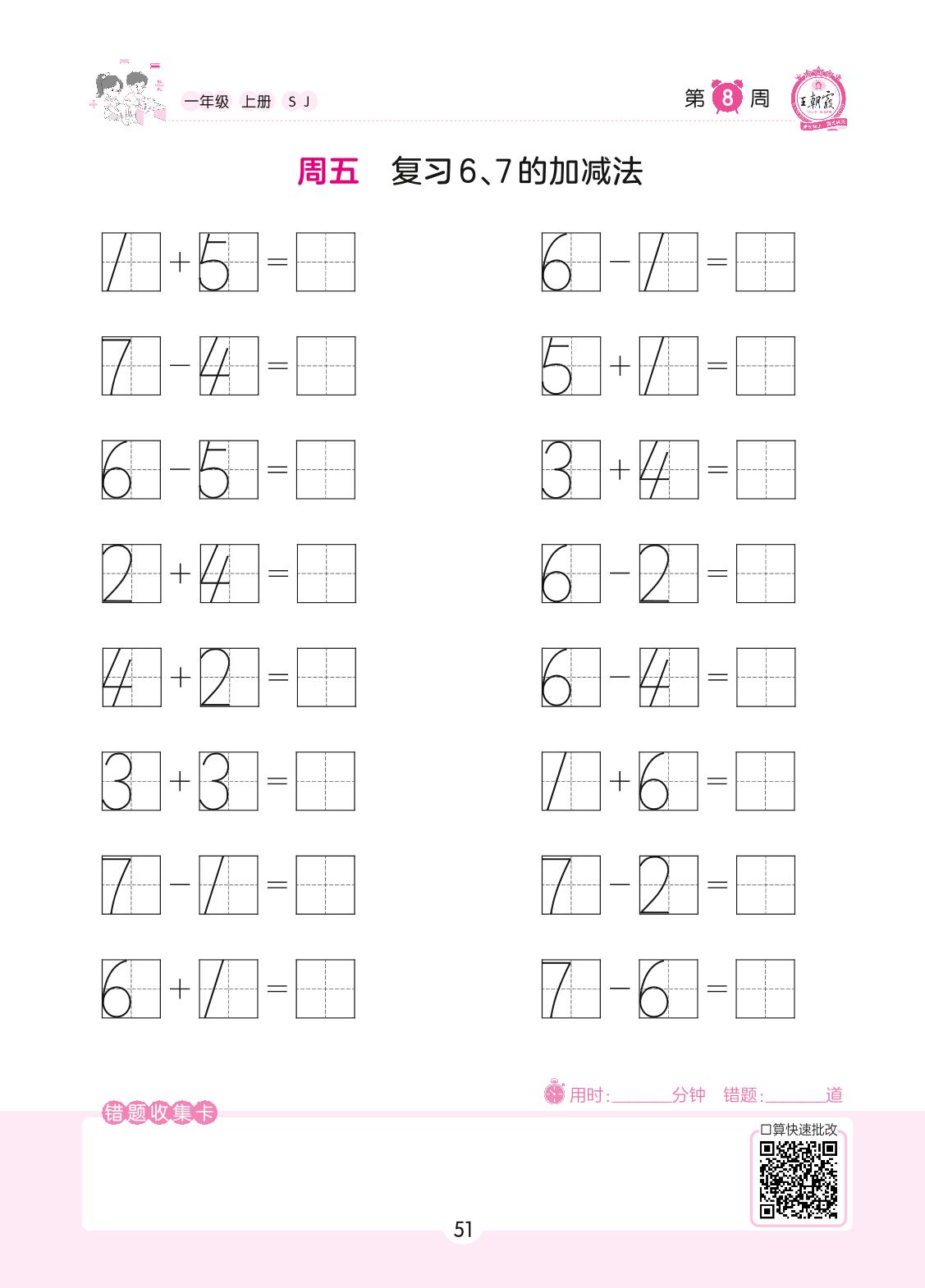 2022上册一年级数学苏教版 第8周 周五