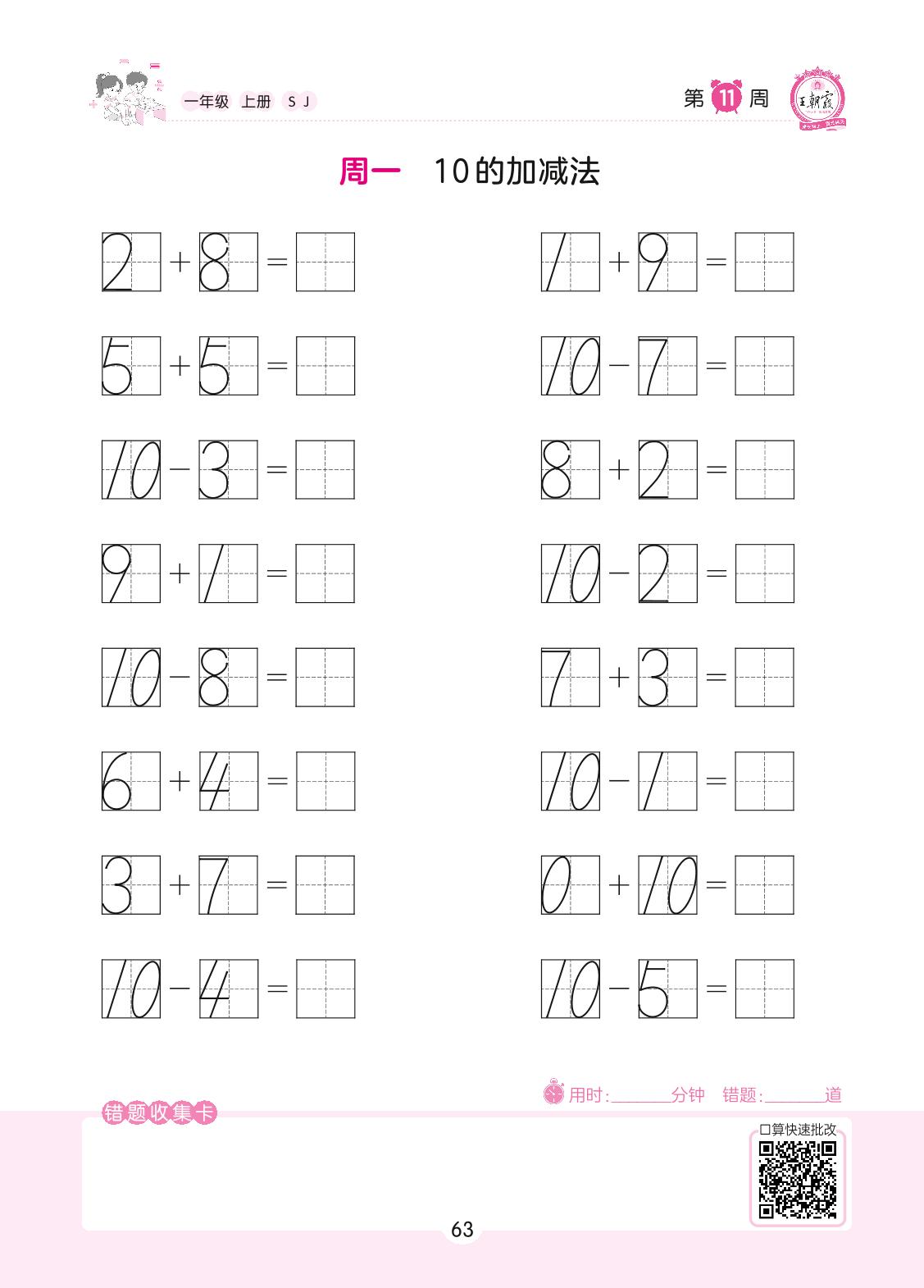 2022上册一年级数学苏教版 第11周 周一