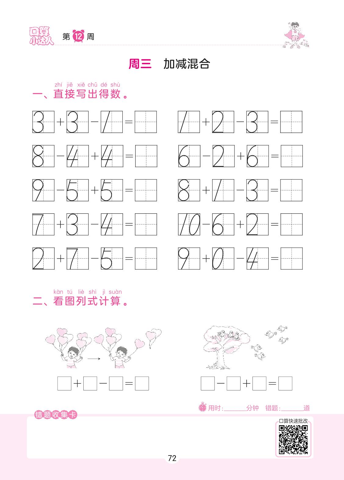 2022上册一年级数学苏教版 第12周 周三
