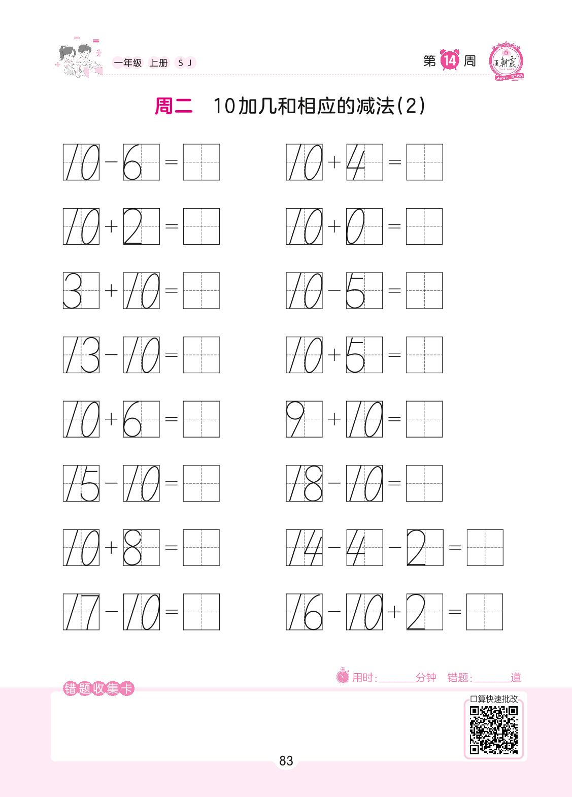 2022上册一年级数学苏教版 第14周 周二