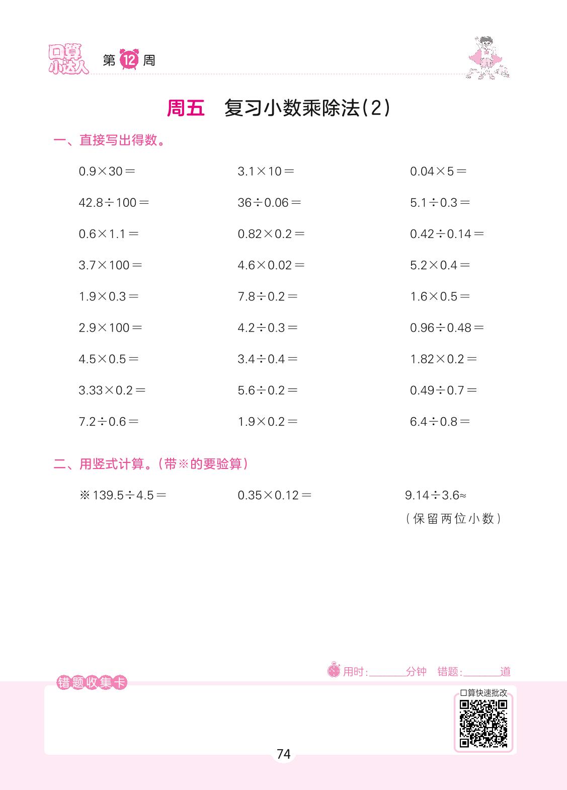 2022上册五年级数学苏教版 第12周 周五