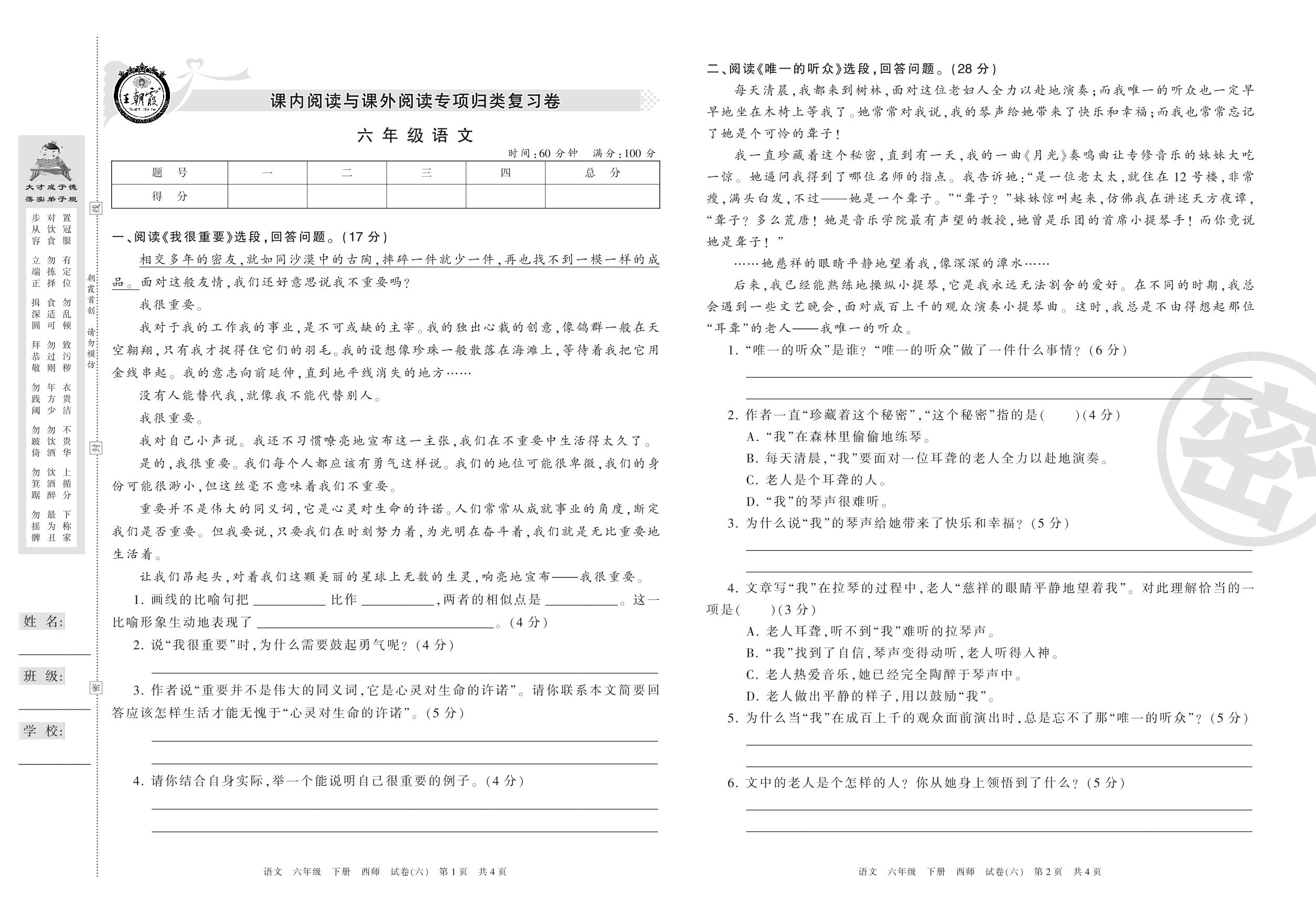 王朝霞期末专项卷六年级下册语文(西师版)_R21080284910【6】