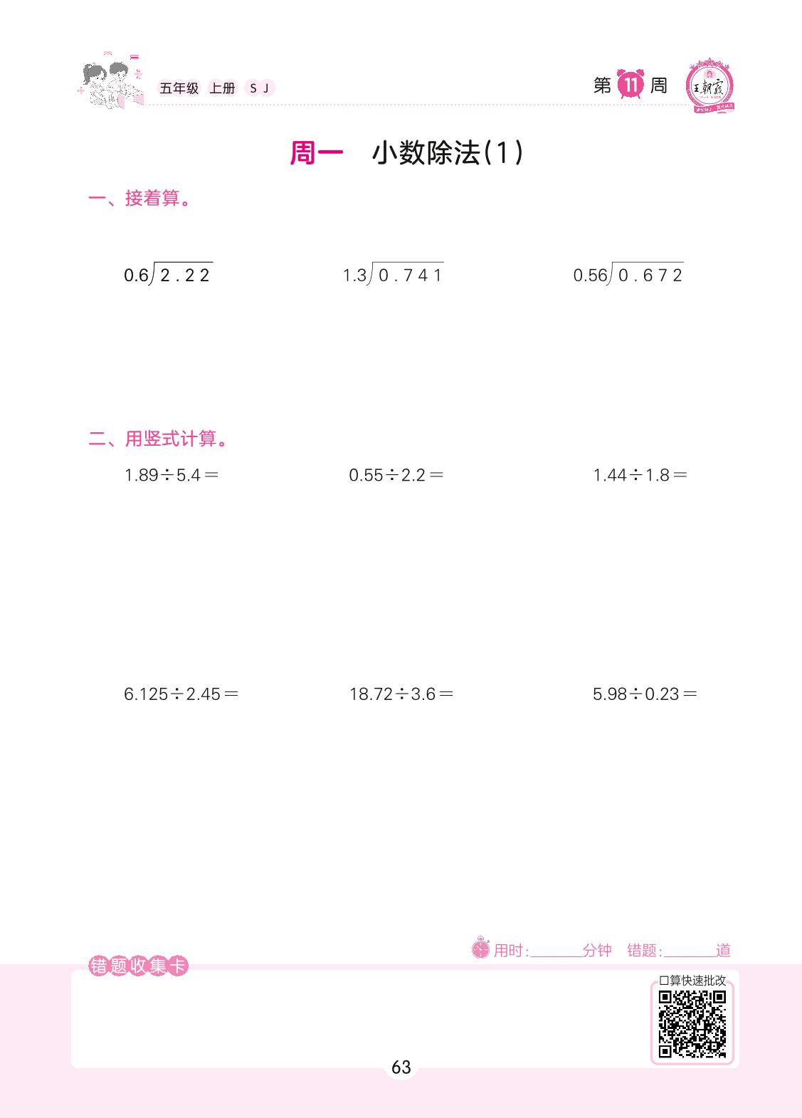 2022上册五年级数学苏教版 第11周 周一
