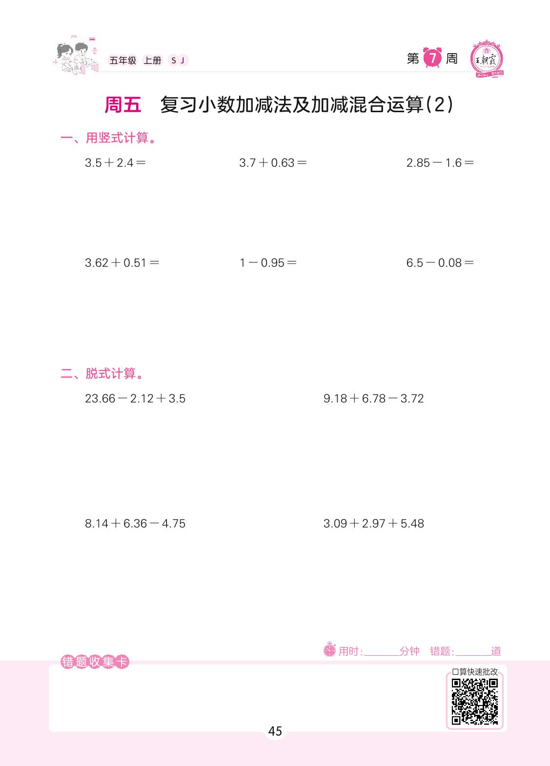 2022上册五年级数学苏教版 第7周 周五