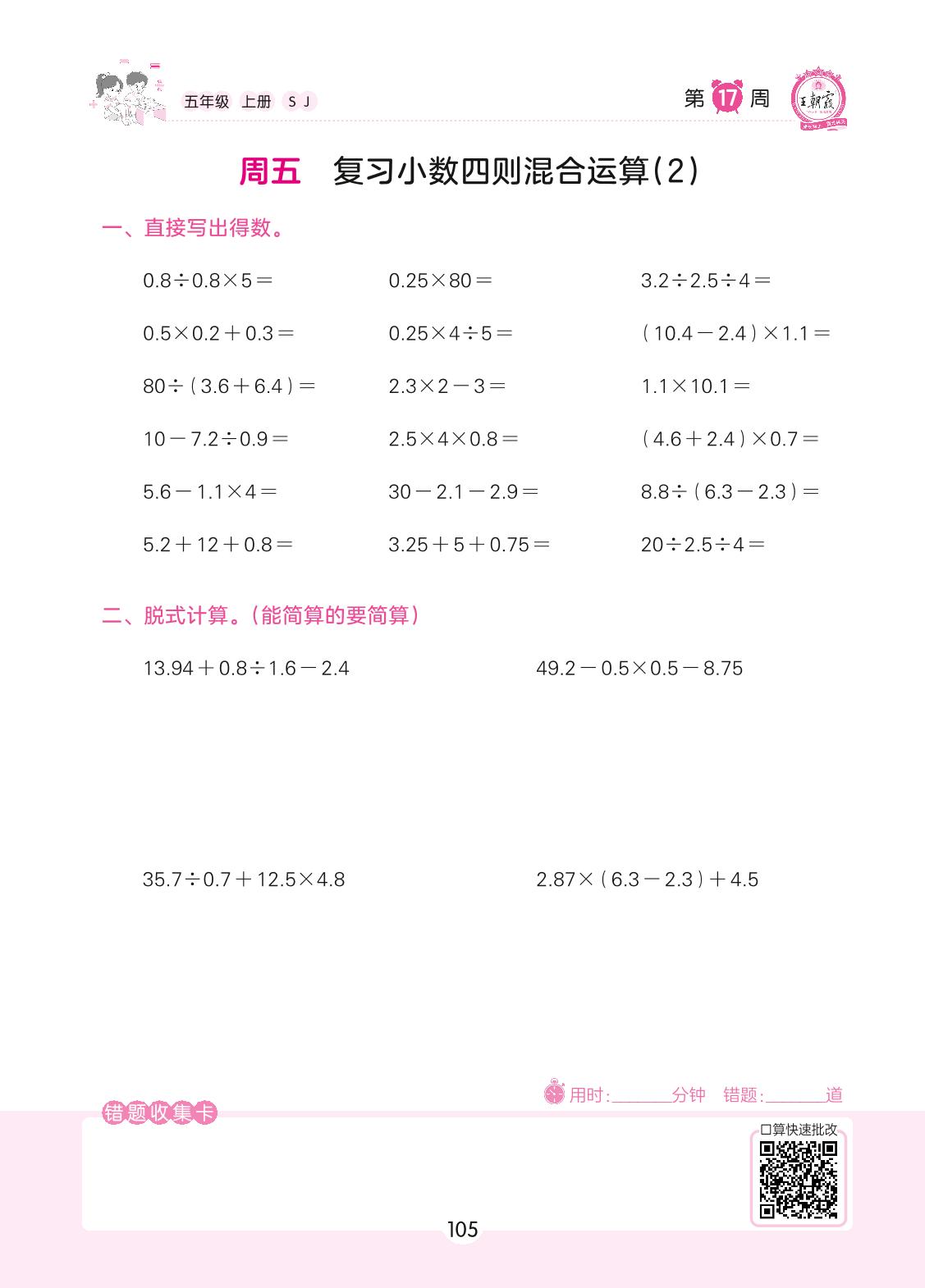2022上册五年级数学苏教版 第17周 周五
