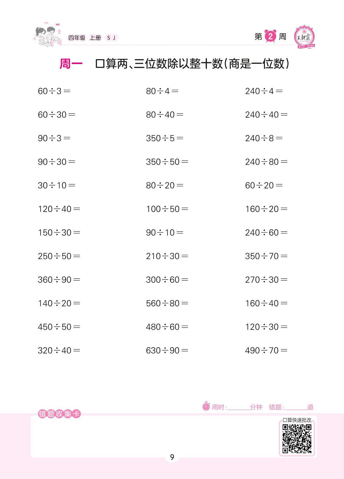 2022上册四年级数学苏教版 第2周 周一