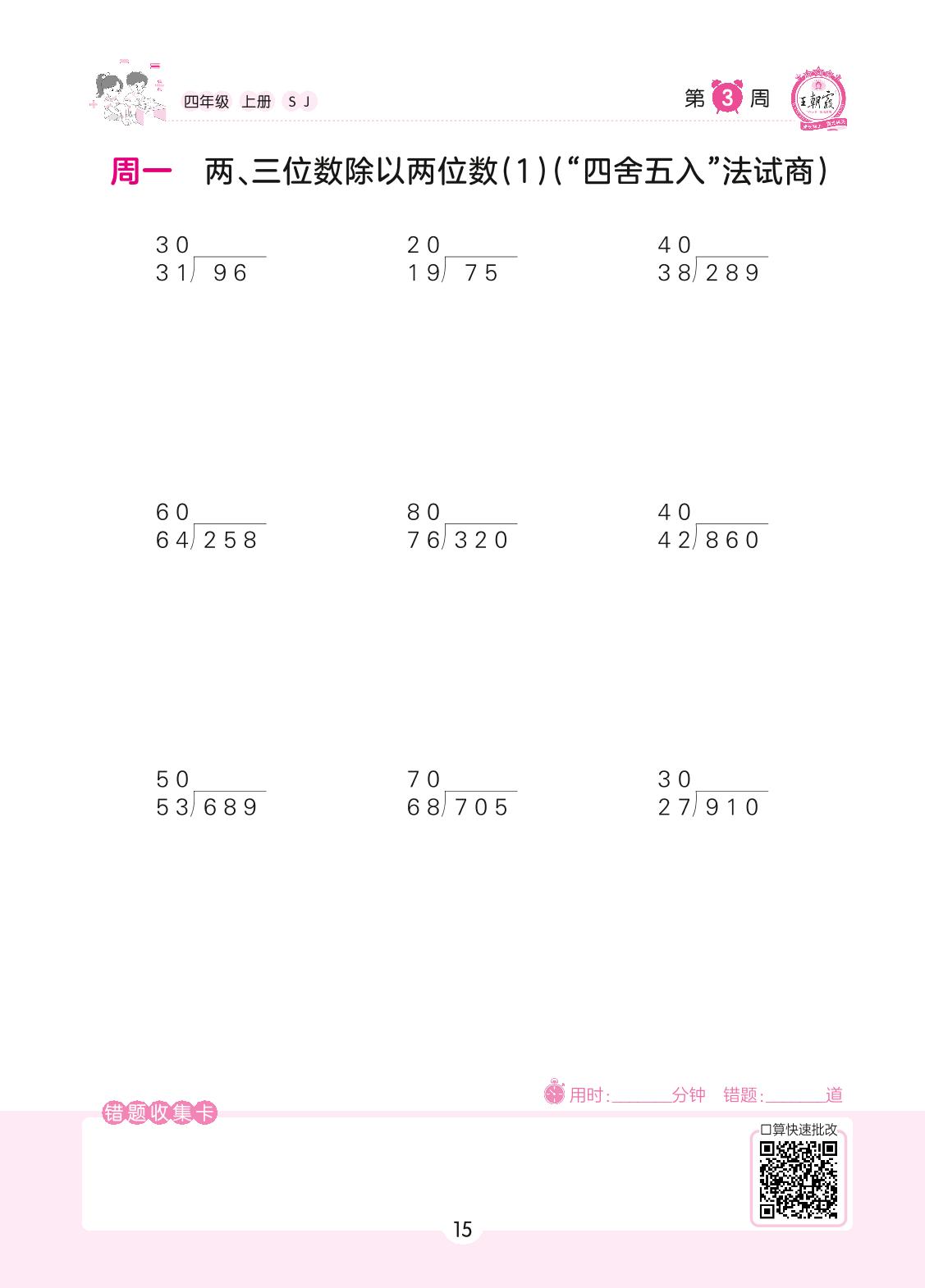 2022上册四年级数学苏教版 第3周 周一