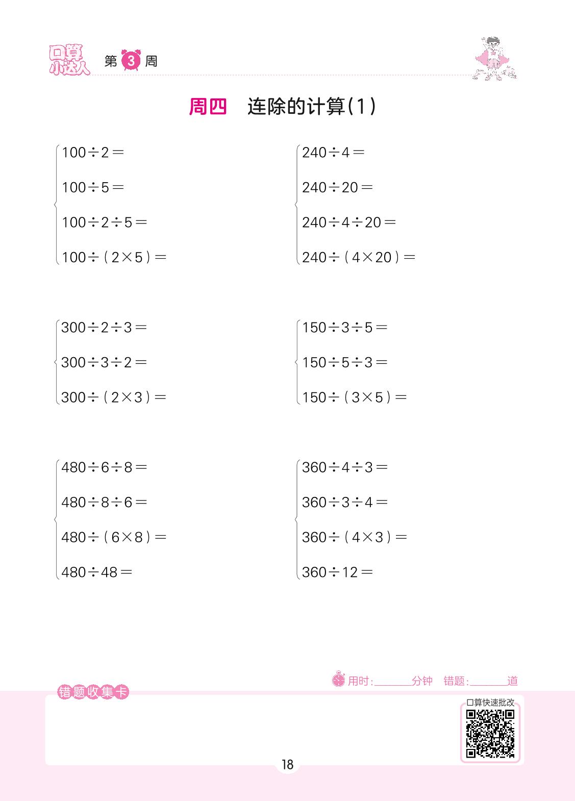 2022上册四年级数学苏教版 第3周 周四