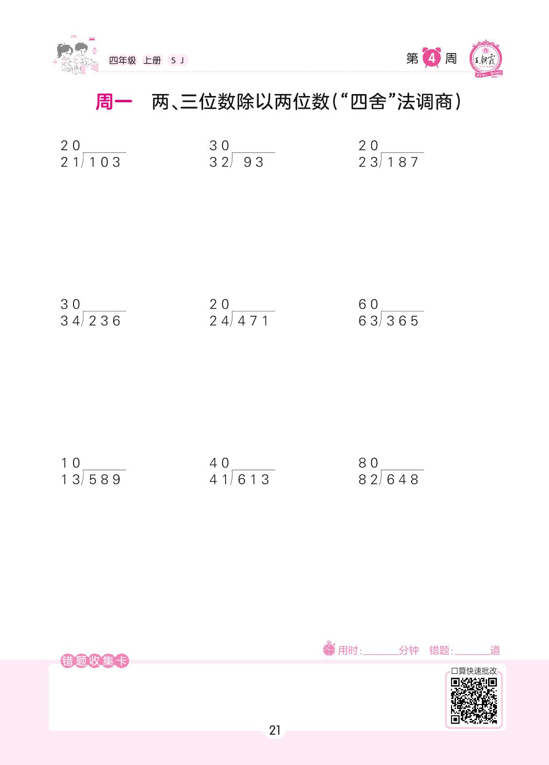 2022上册四年级数学苏教版 第4周 周一