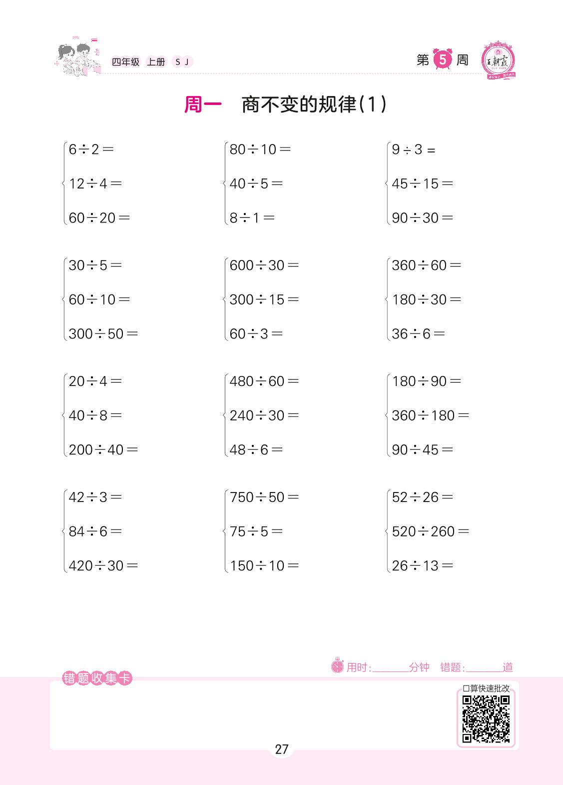 2022上册四年级数学苏教版 第5周 周一