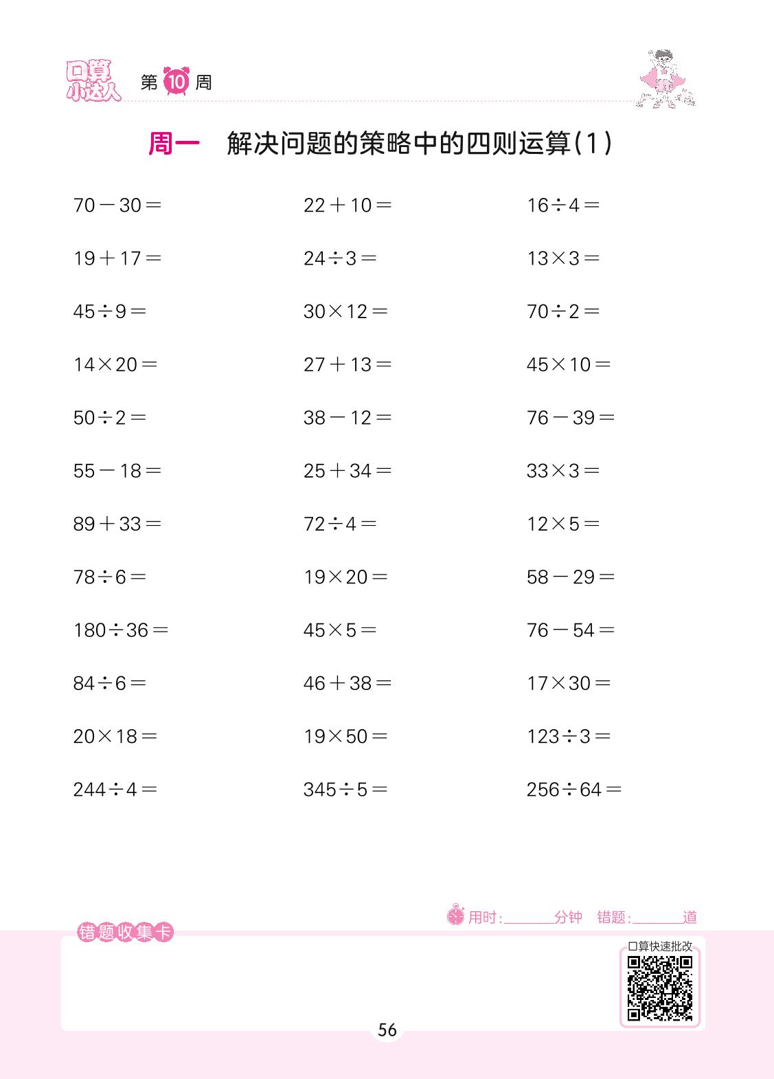 2022上册四年级数学苏教版 第10周 周一
