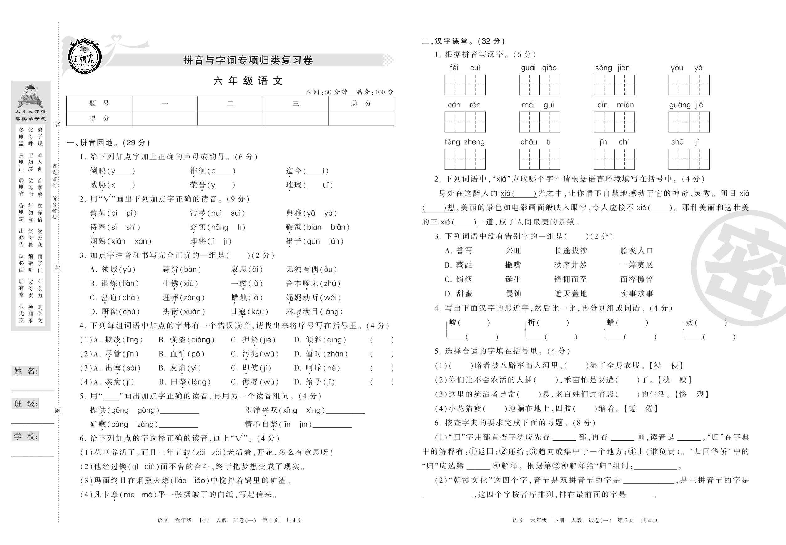 王朝霞期末专项卷六年级下册语文(人教版)_R21080285250【1】