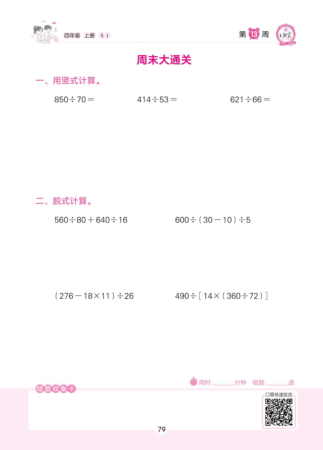 2022上册四年级数学苏教版 第13周 周末大通关
