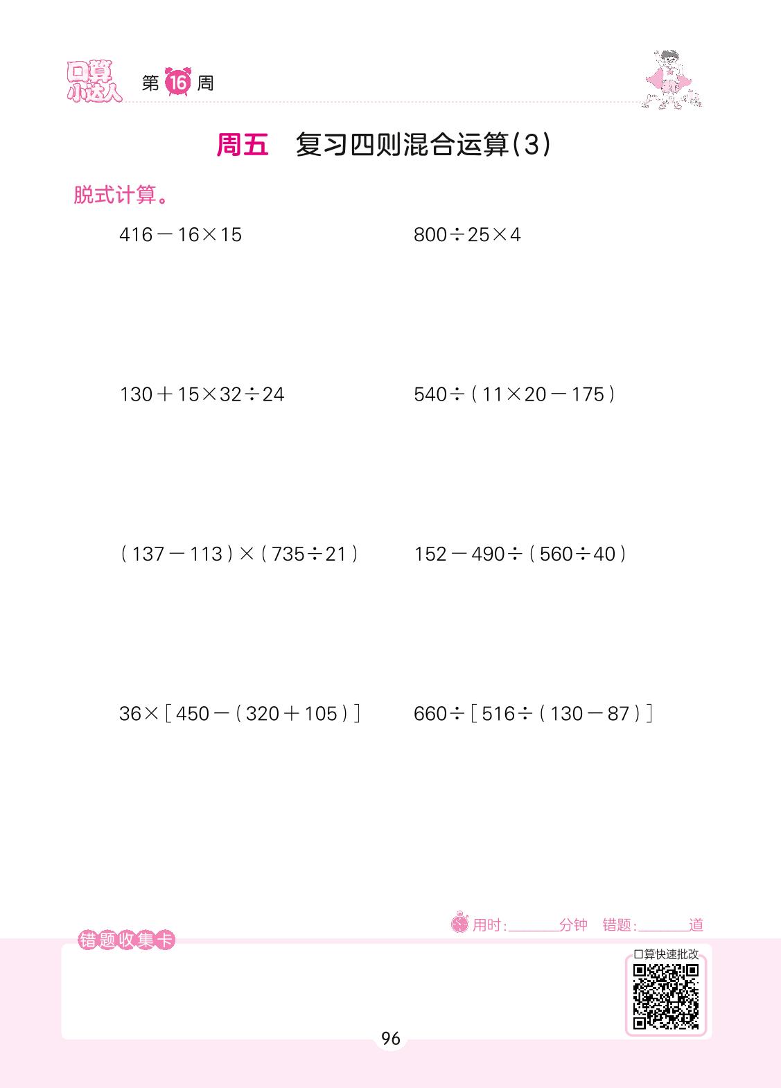 2022上册四年级数学苏教版 第16周 周五