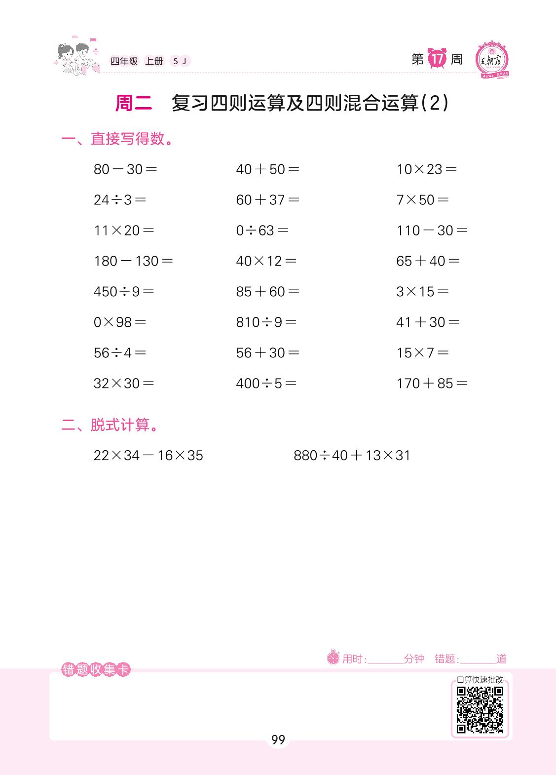 2022上册四年级数学苏教版 第17周 周二