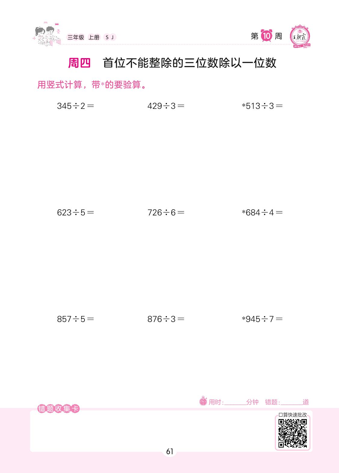 2022上册三年级数学苏教版 第10周 周四