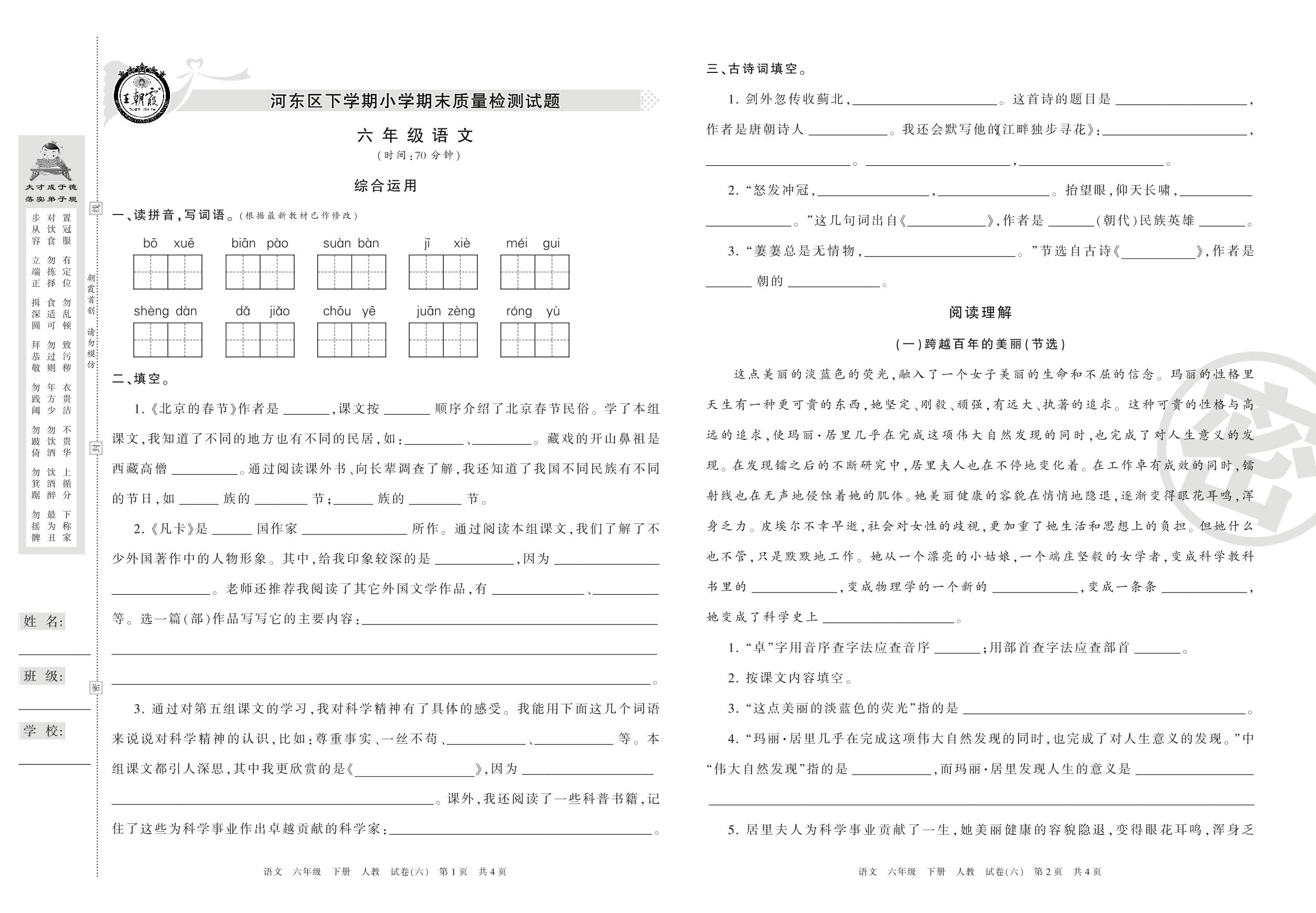 六年级语文人教版下册期末卷