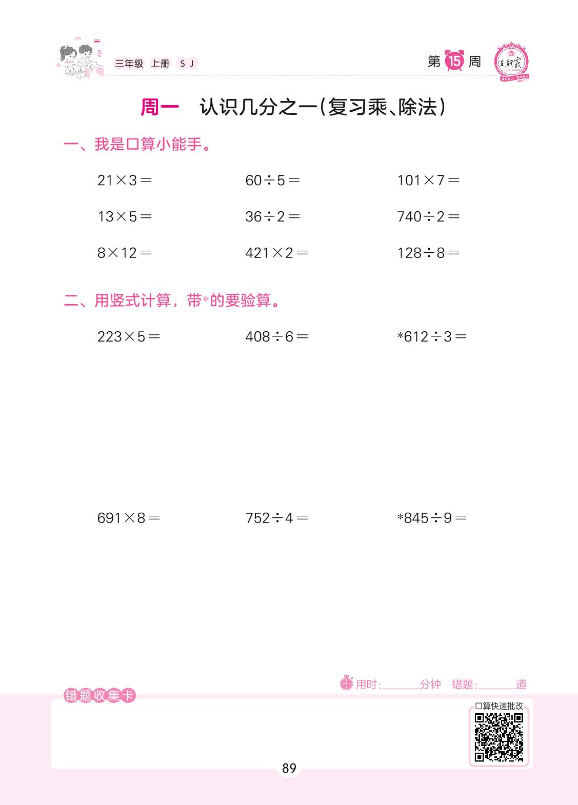 2022上册三年级数学苏教版 第15周 周一