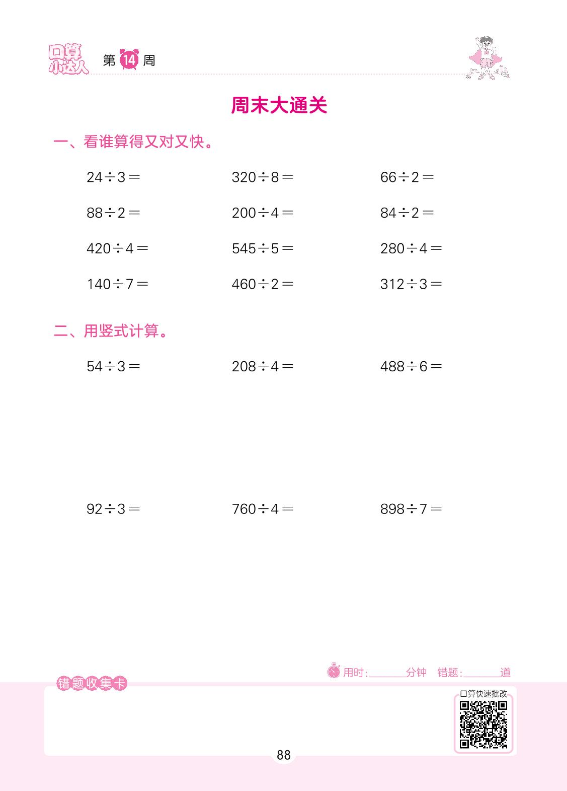 2022上册三年级数学苏教版 第14周 周末大通关