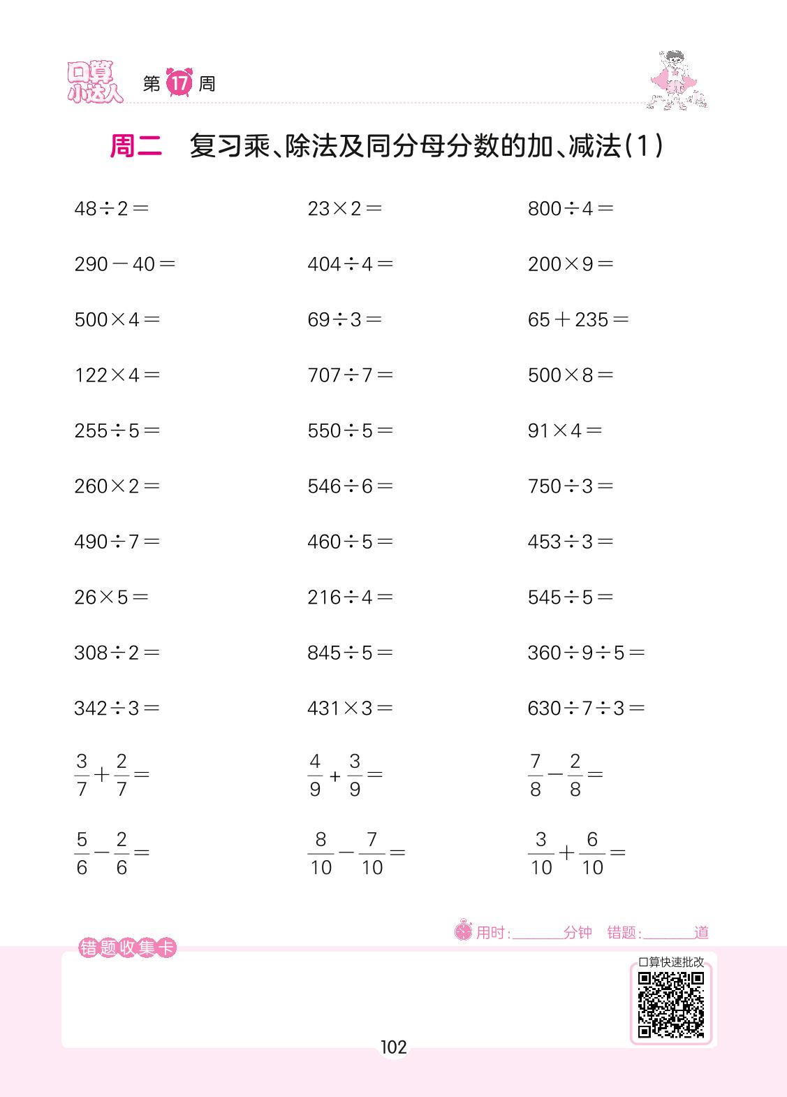 2022上册三年级数学苏教版 第17周 周二