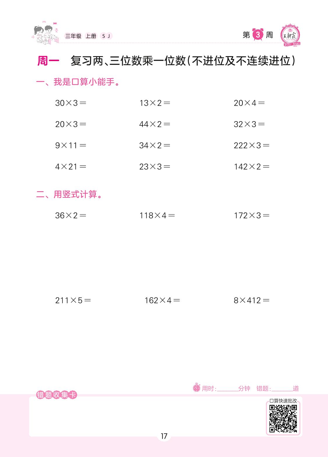2022上册三年级数学苏教版 第3周 周一
