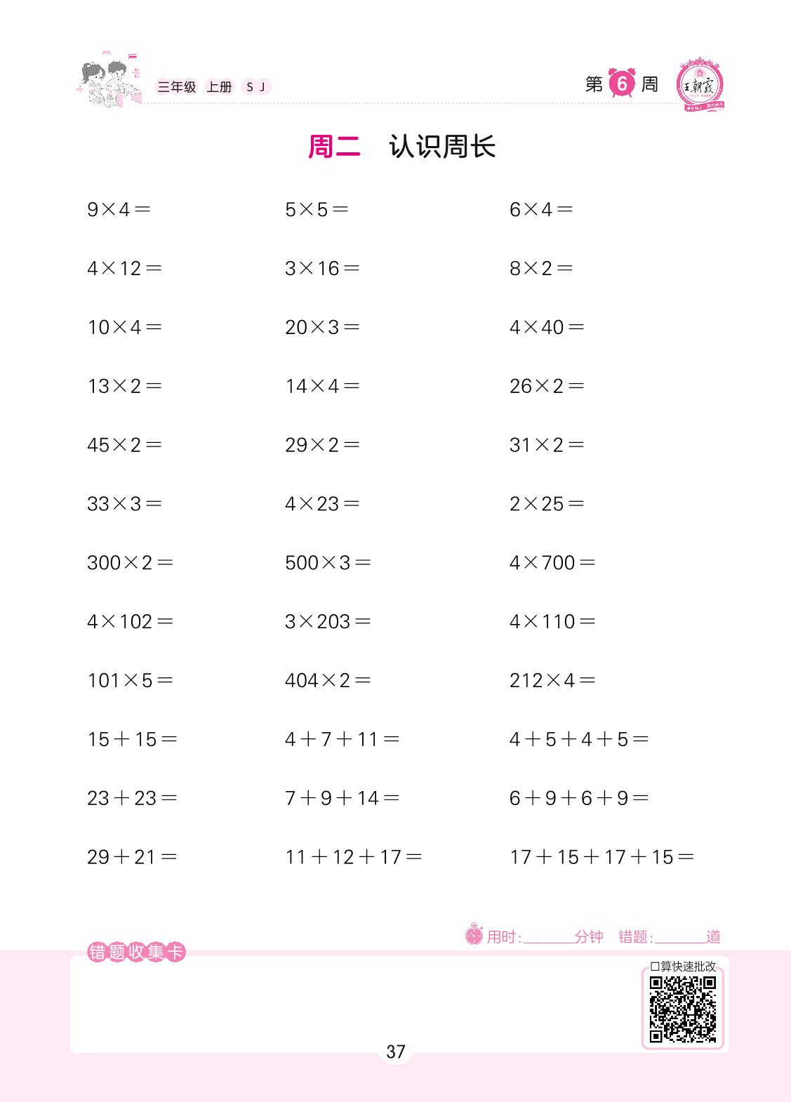 2022上册三年级数学苏教版 第6周 周二