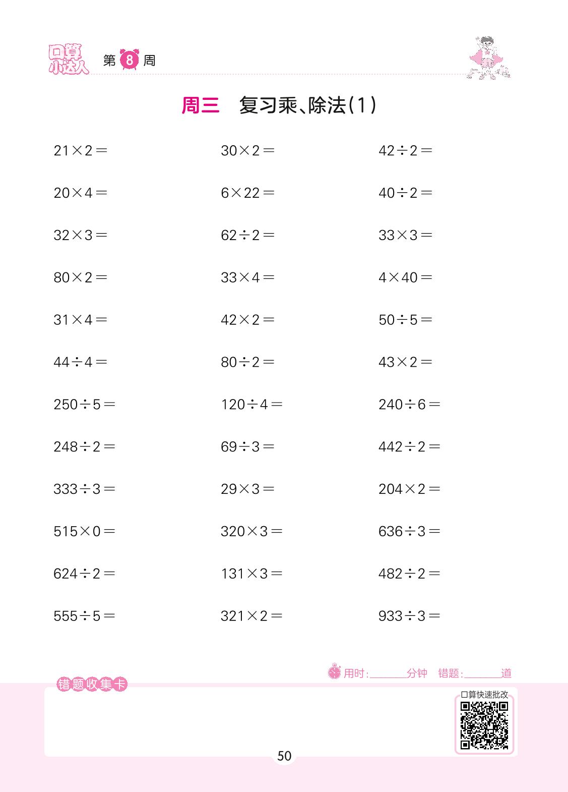 2022上册三年级数学苏教版 第8周 周三